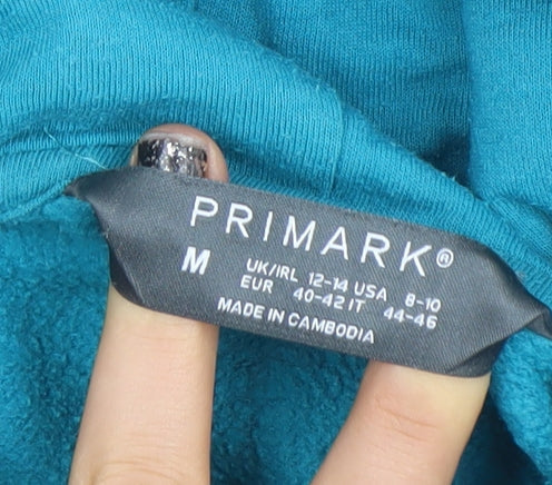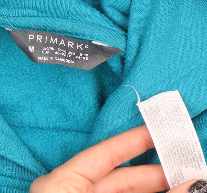 Primark Womens Blue Pullover Hoodie Medium Graphic Print Cotton Blend