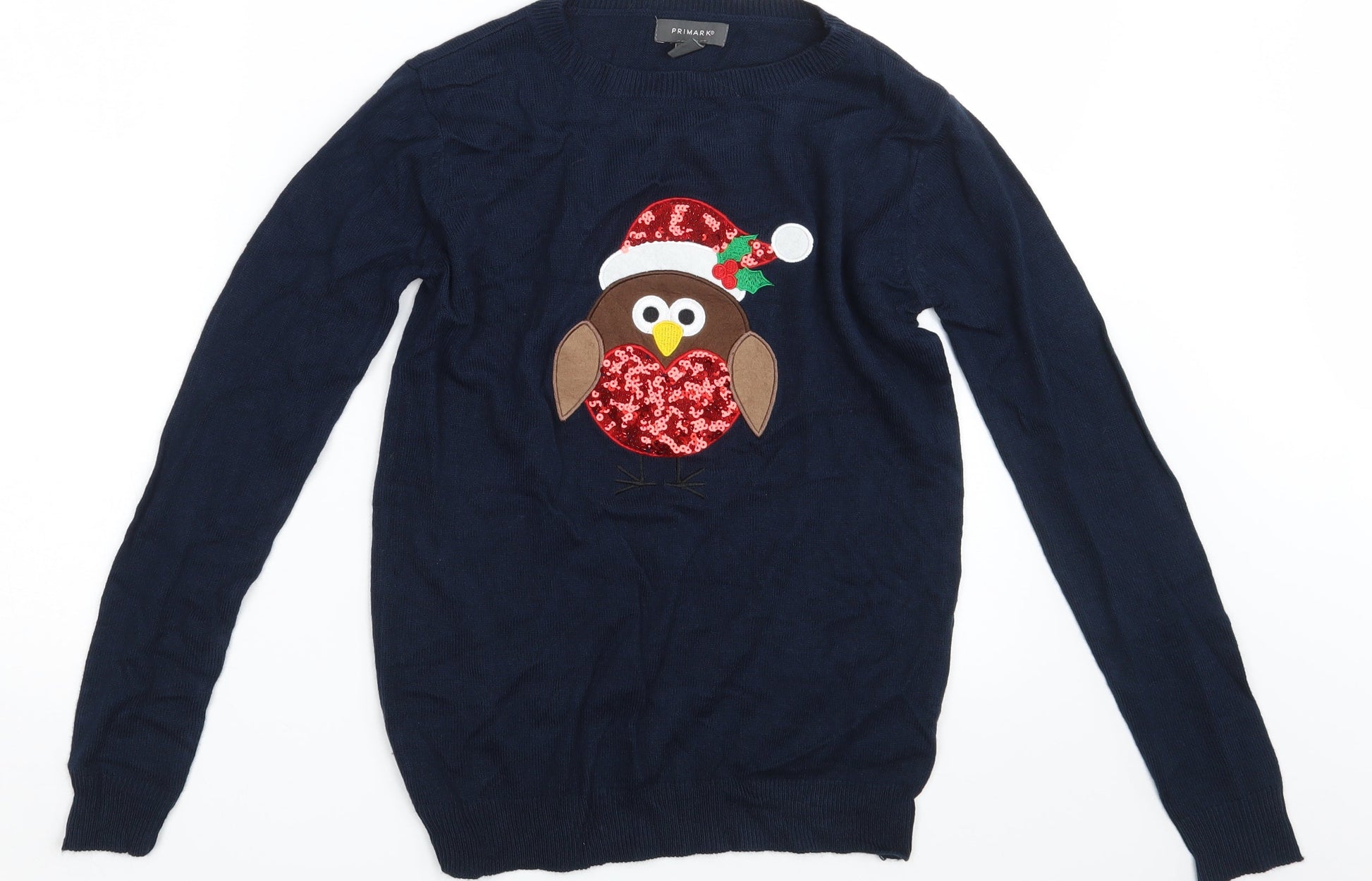 Primark Womens Blue Pullover Jumper Size 4 - Seasonal Christmas Festive Holiday
