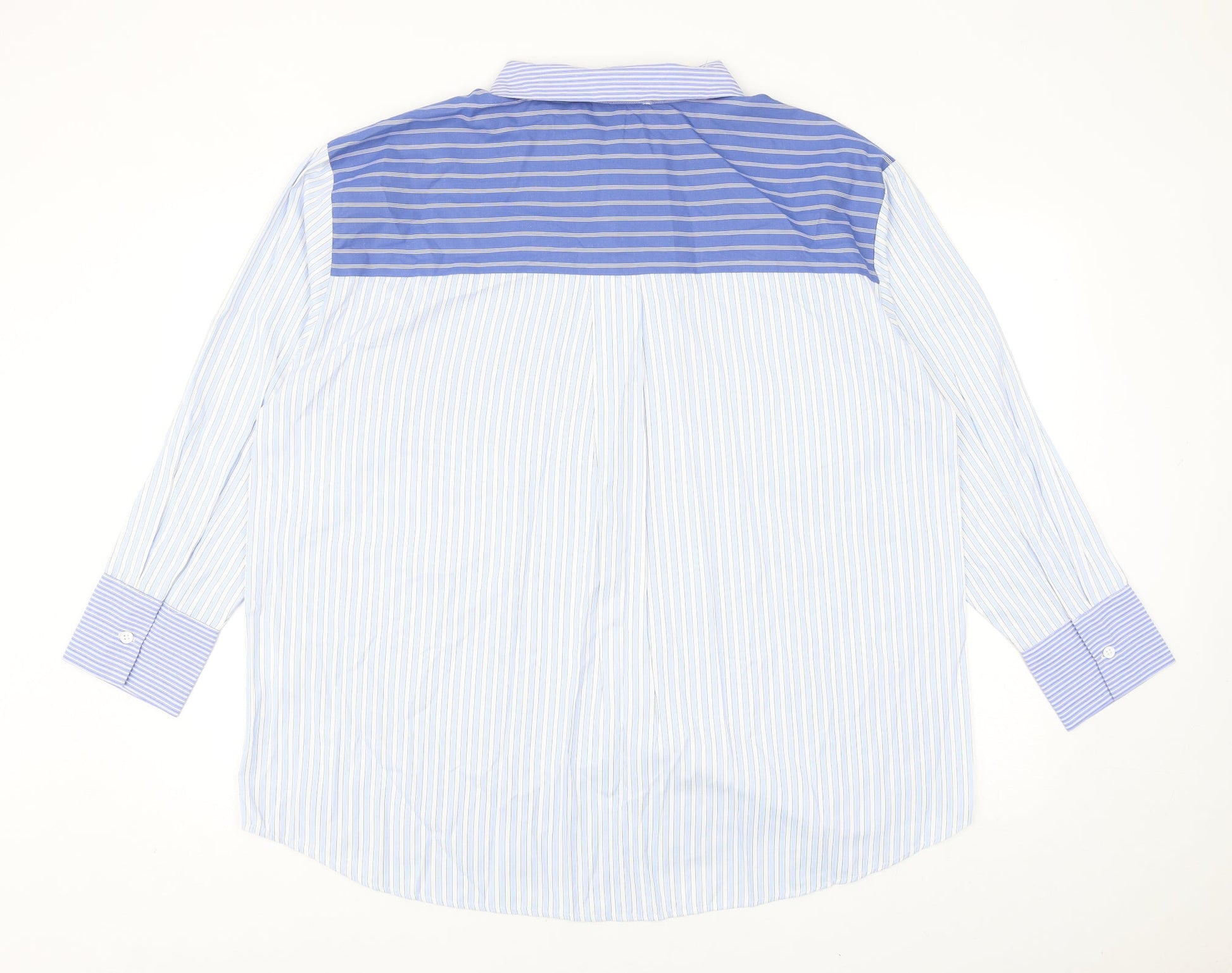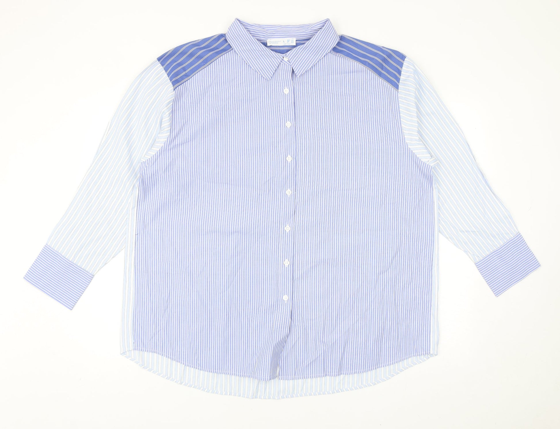 Primark Womens Blue Striped Polyester Basic Button-Up Size L Collared