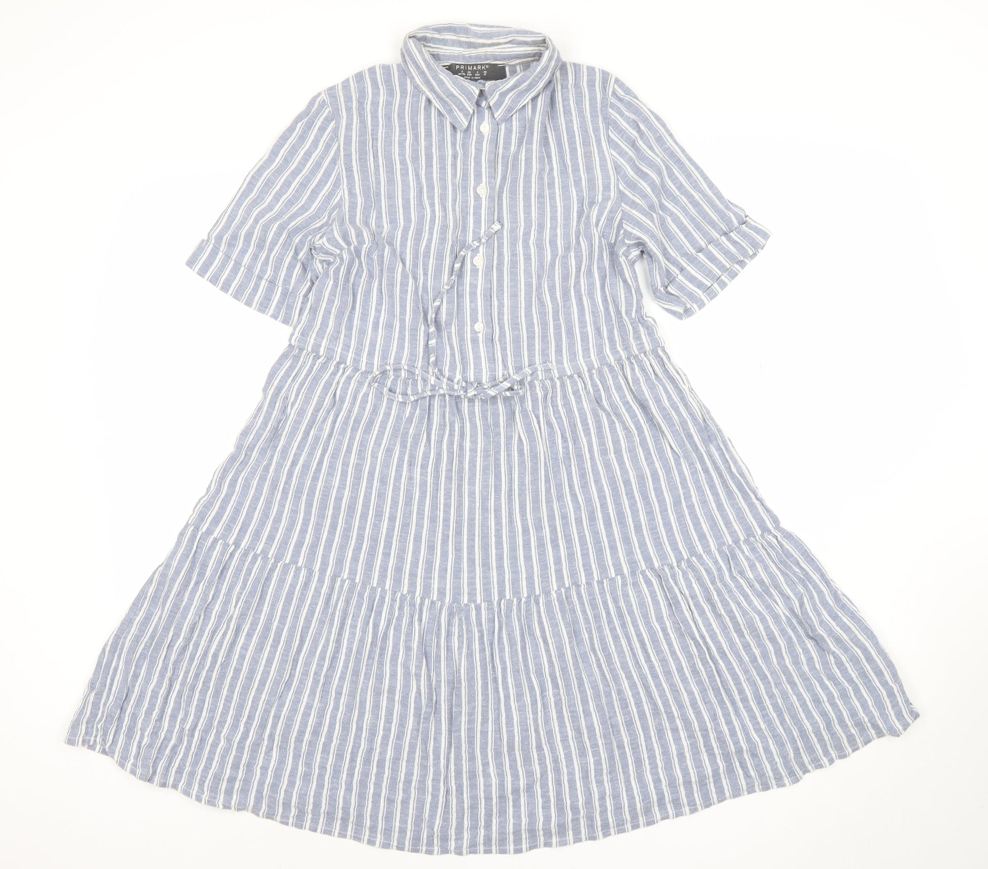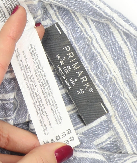Primark Womens Blue Striped Shirt Dress Size 8 Midi Cotton Blend
