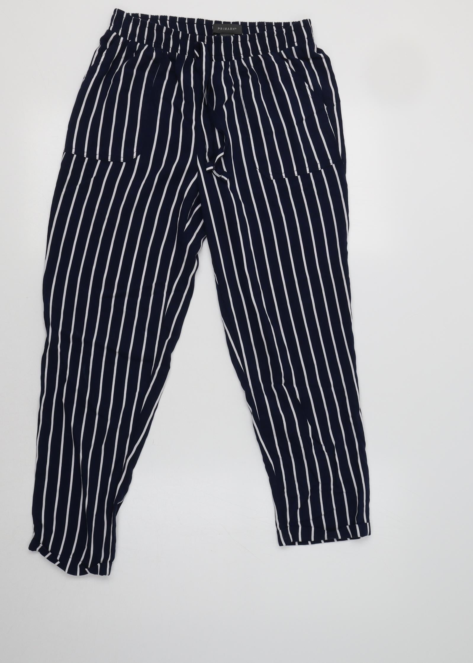 Primark Womens Blue Striped Trousers Size 8 L25 in