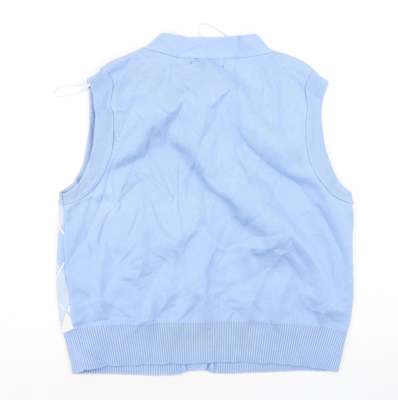 Primark Womens Blue V-Neck Argyle/Diamond Viscose Cardigan Jumper Size 10