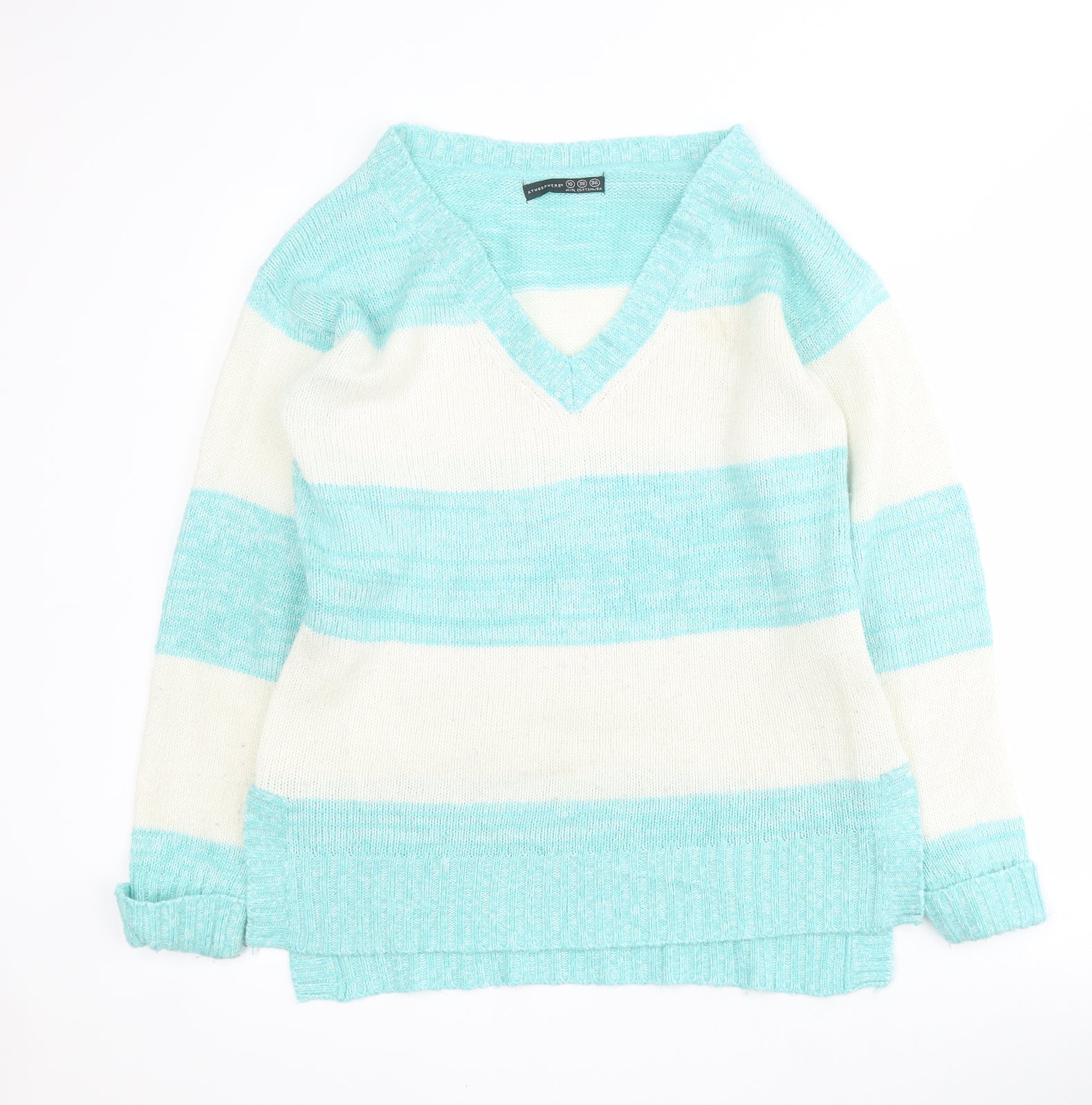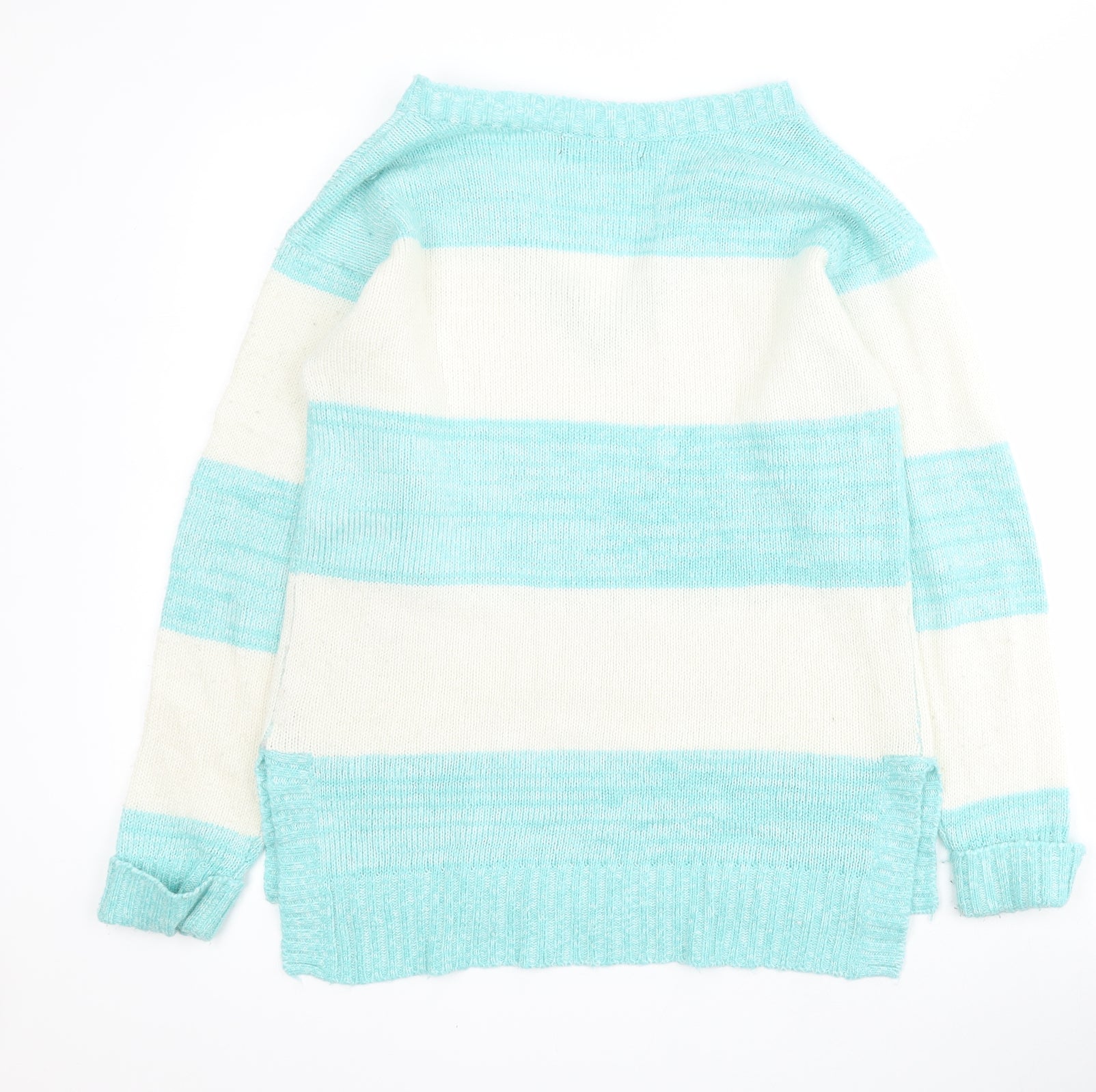 Primark Womens Blue V-Neck Striped Acrylic Pullover Jumper Size 10