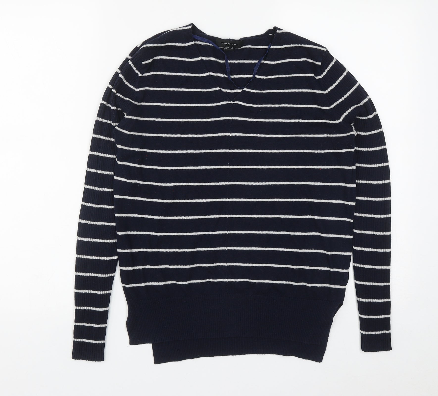 Primark Womens Blue V-Neck Striped Acrylic Pullover Jumper Size 10