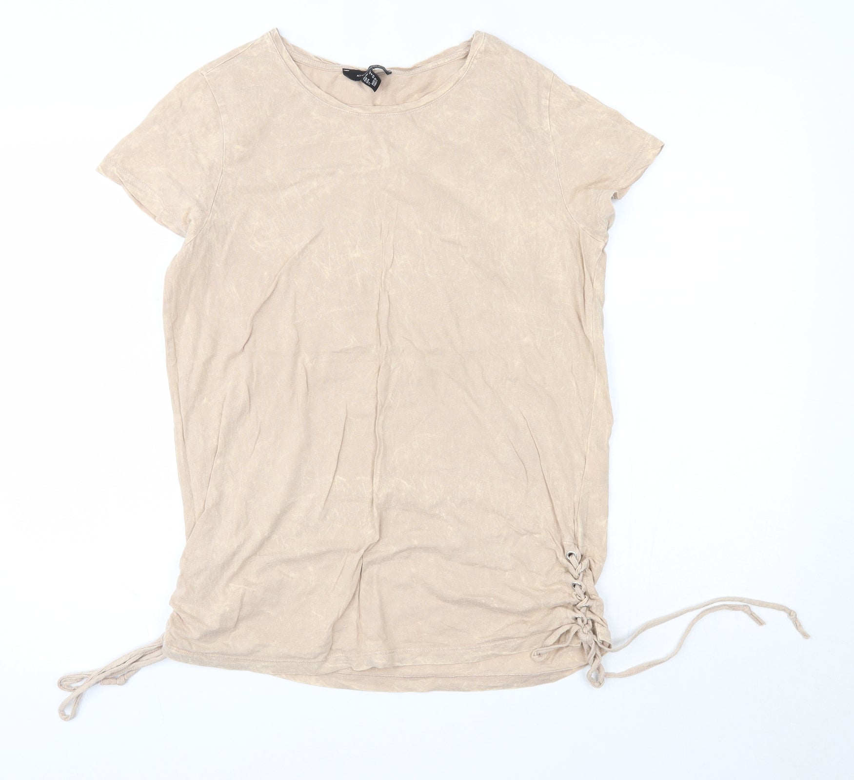 Primark Womens Brown 100% Cotton Basic Blouse Size 8 Round Neck