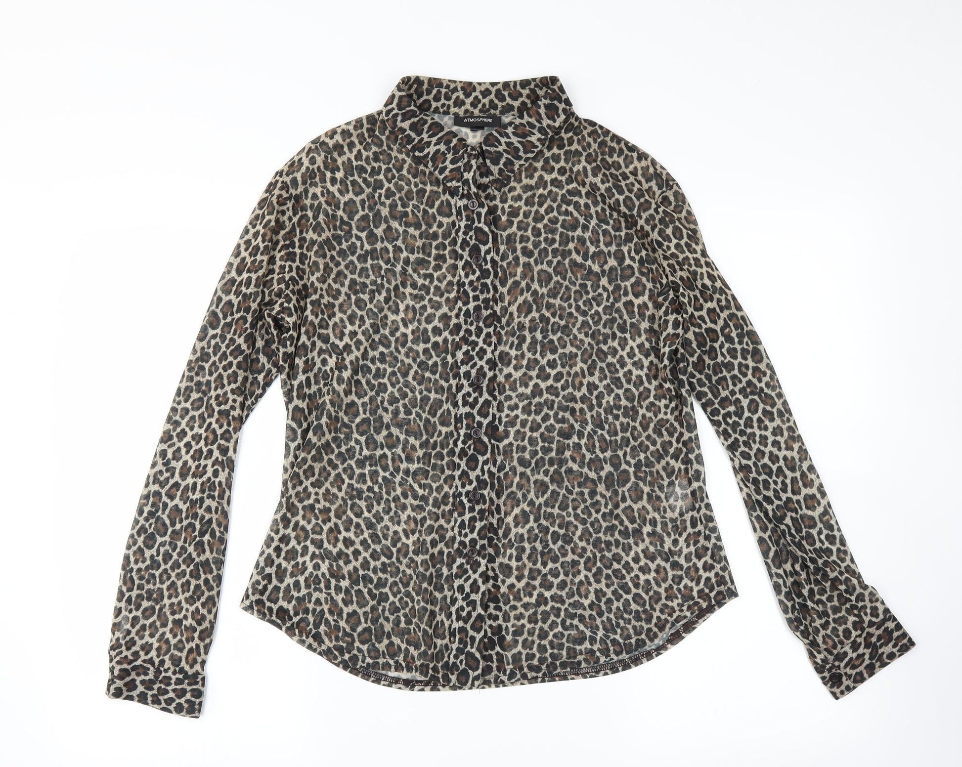 Primark Womens Brown Animal Print Basic Blouse - sheer