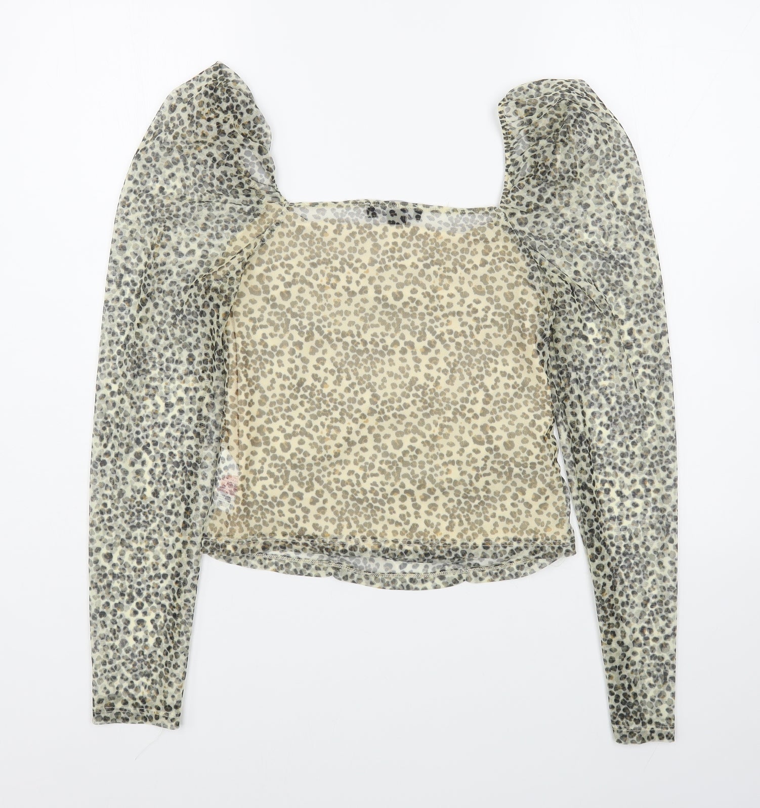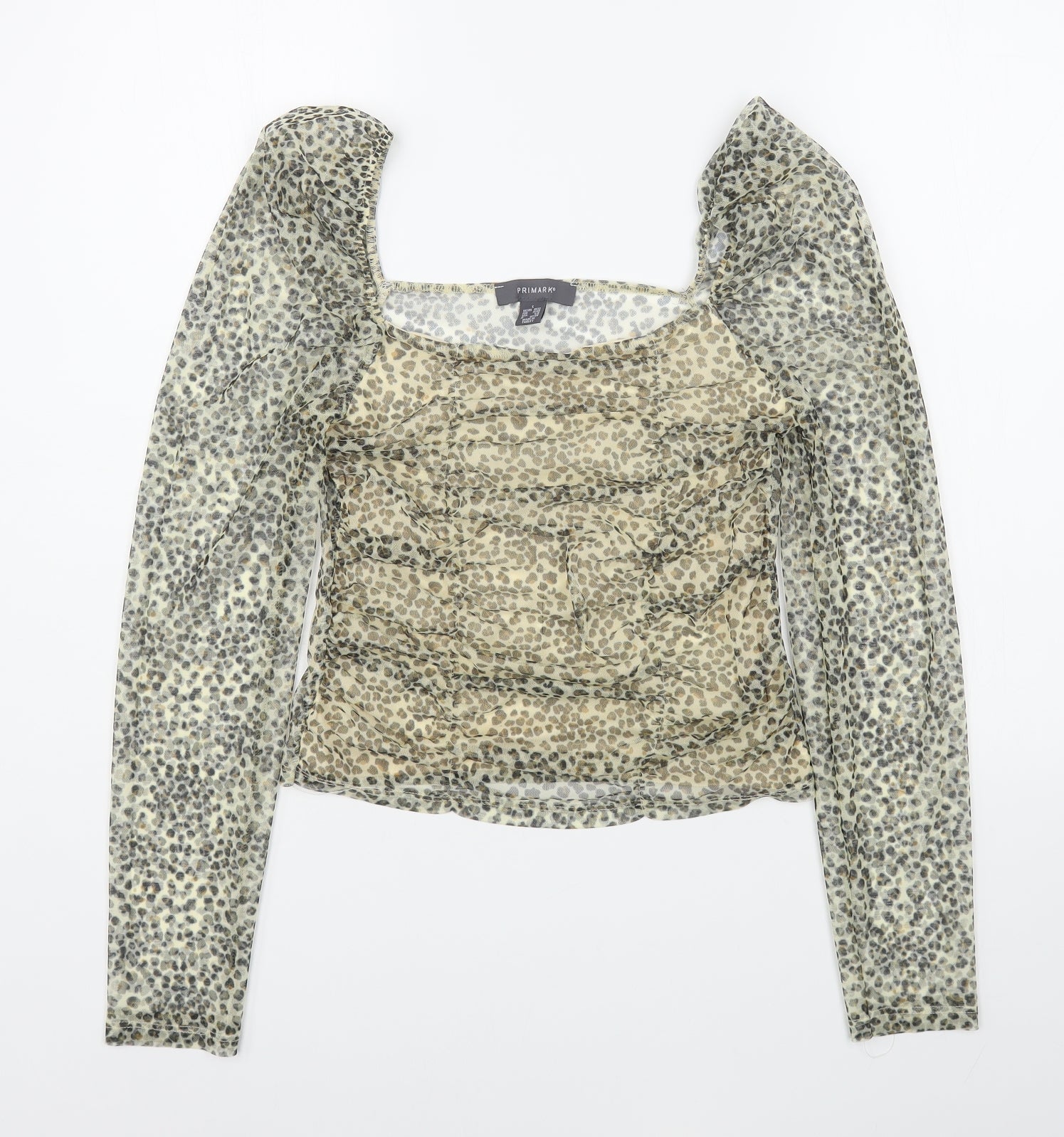 Primark Womens Brown Animal Print Polyester Basic Blouse Size S Square Neck