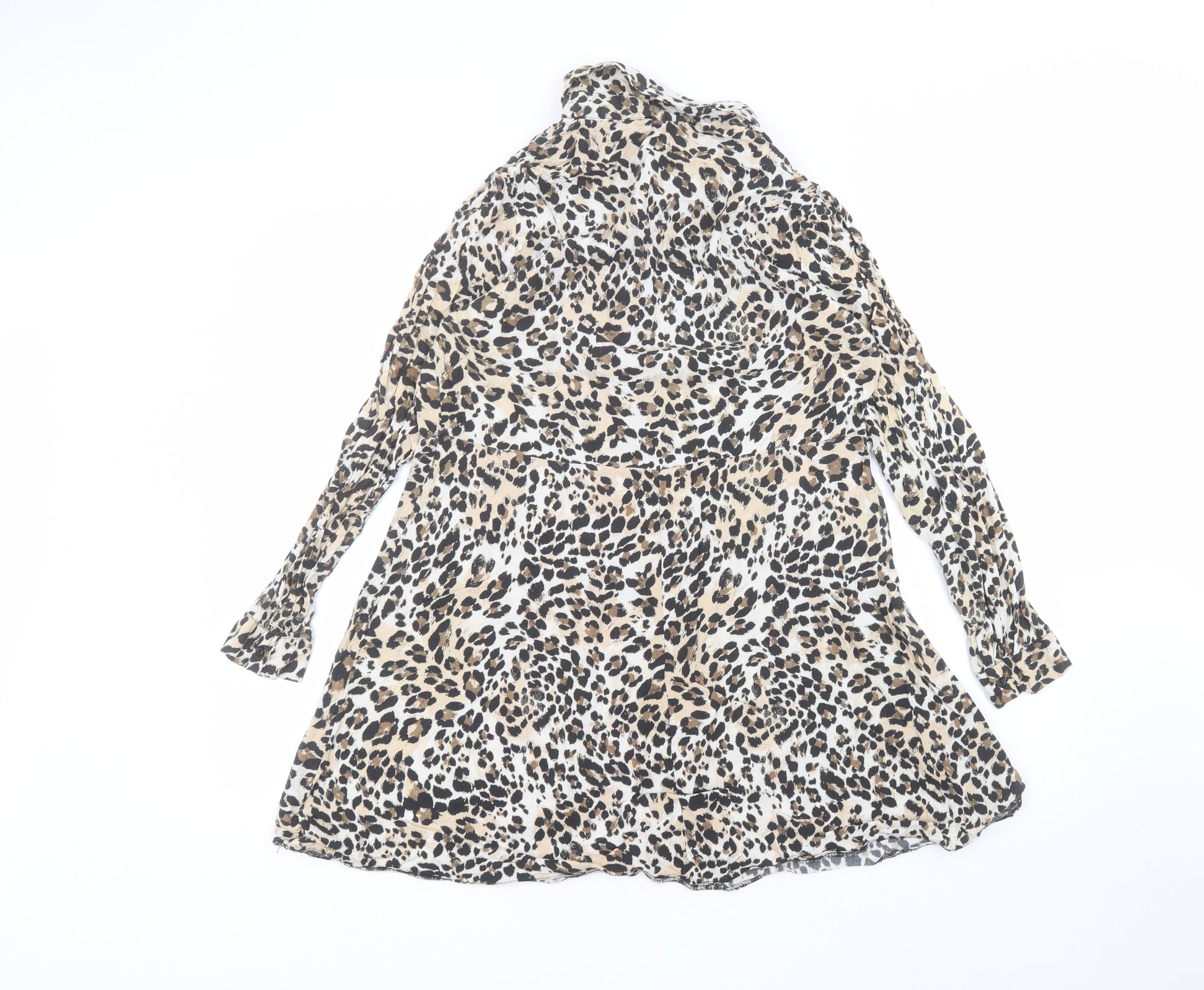 Primark Womens Brown Animal Print Viscose Basic Blouse Size 16 Collared