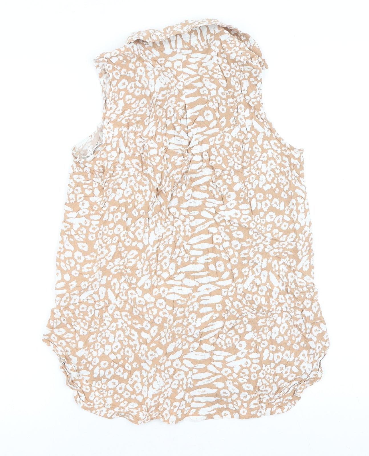 Primark Womens Brown Animal Print Viscose Basic Button-Up Size 14 Collared