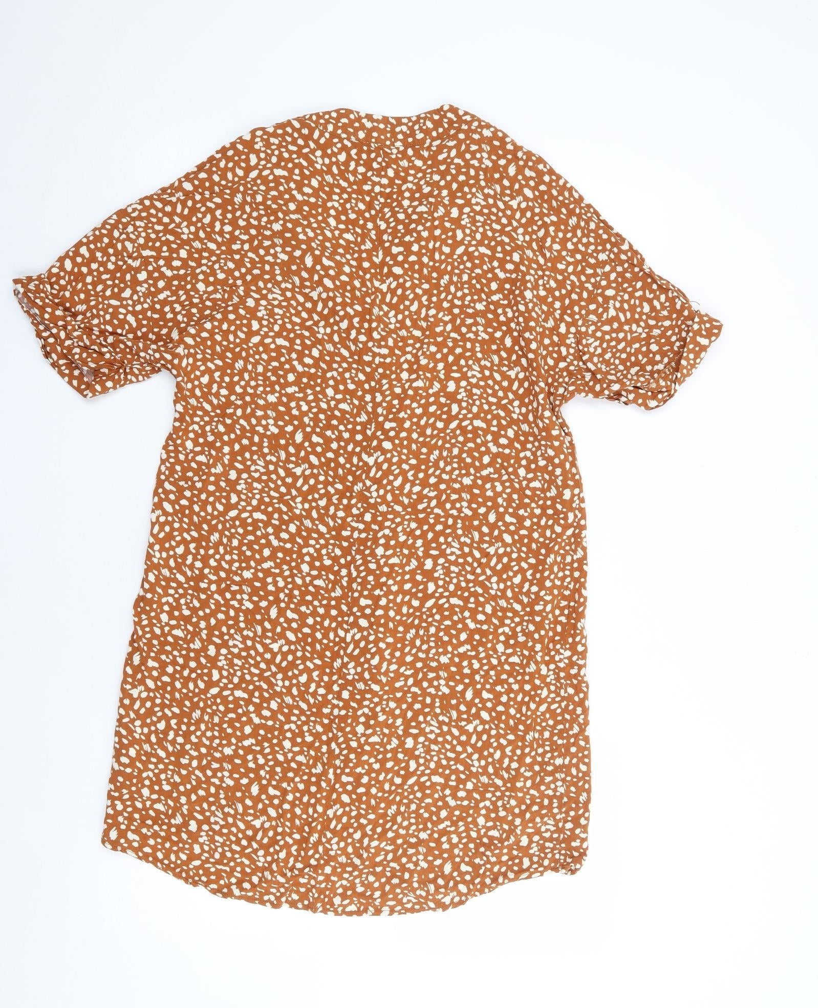 Primark Womens Brown Animal Print Viscose Shift Size 6 V-Neck Pullover