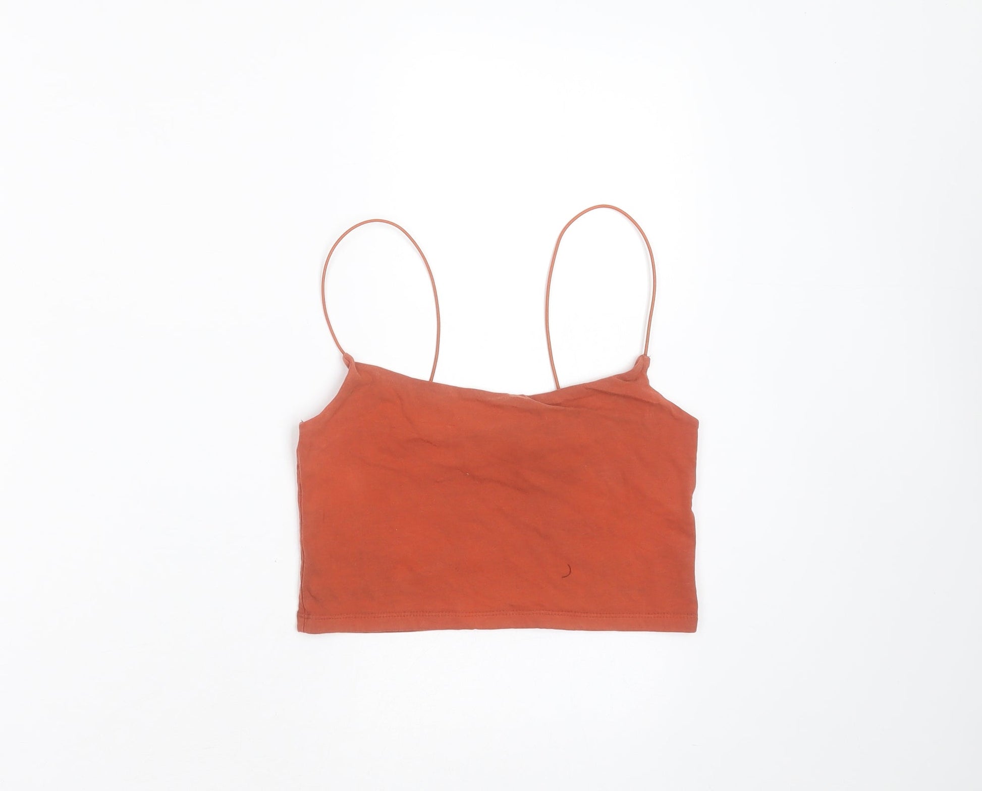 Primark Womens Brown Cotton Cropped T-Shirt Size XS Round Neck