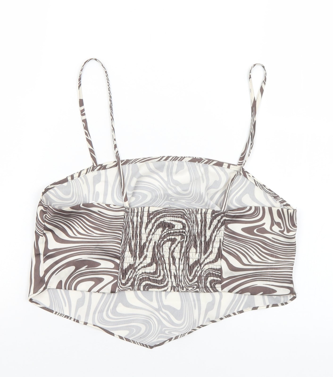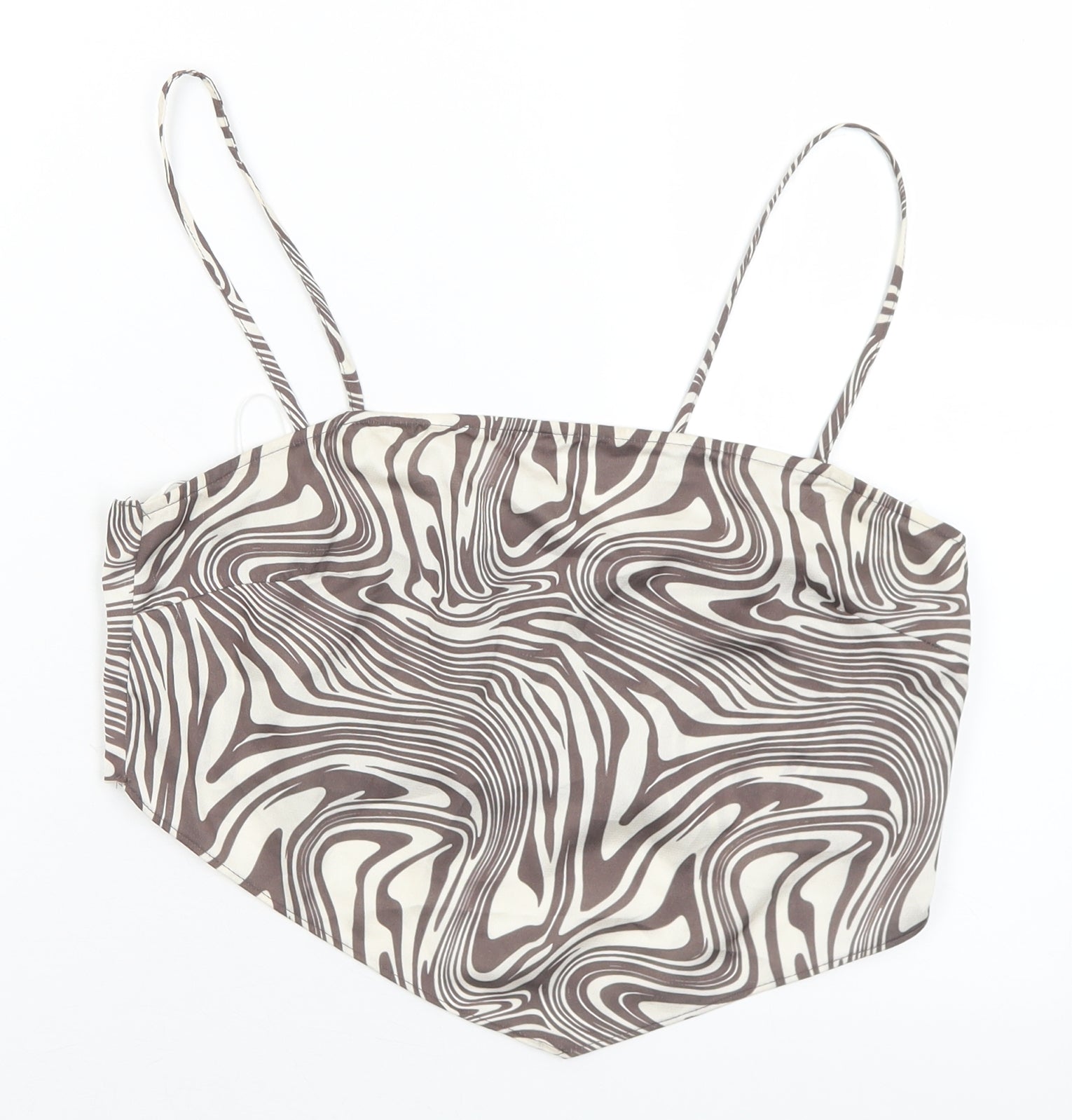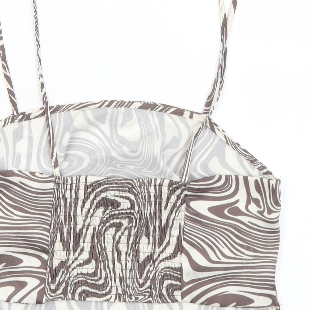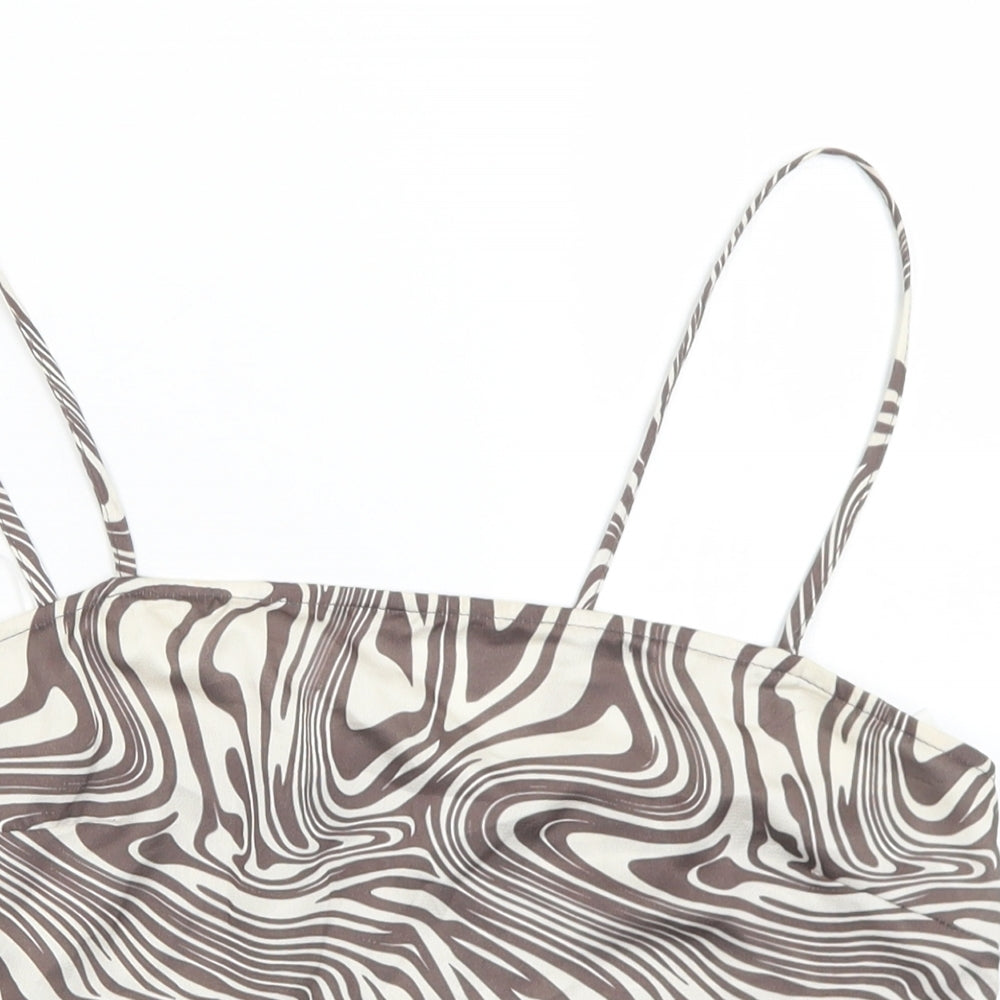 Primark Womens Brown Geometric Polyester Cropped Tank Size 12 Square Neck