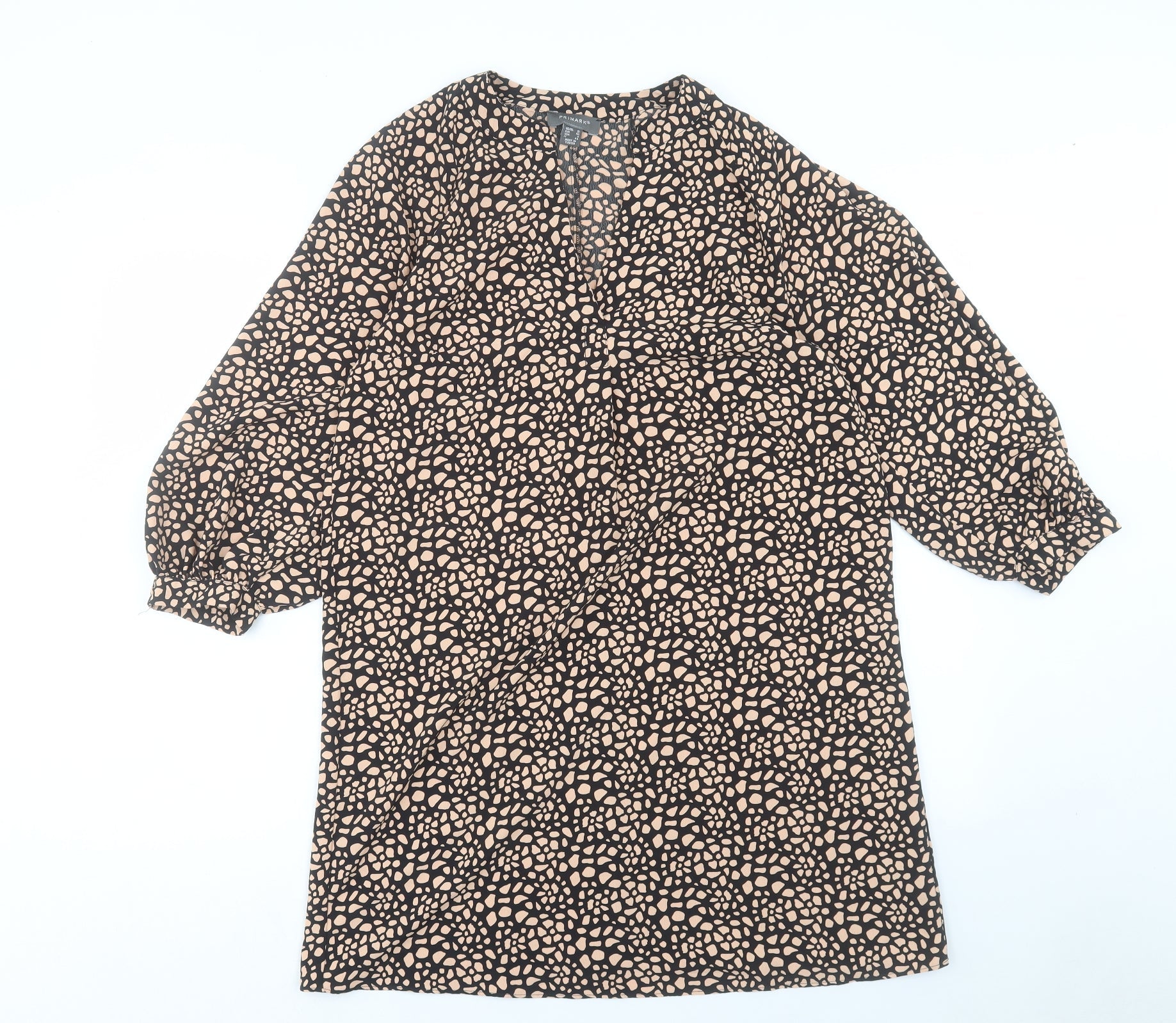 Primark Womens Brown Geometric Polyester Sheath Size 12 V-Neck Pullover