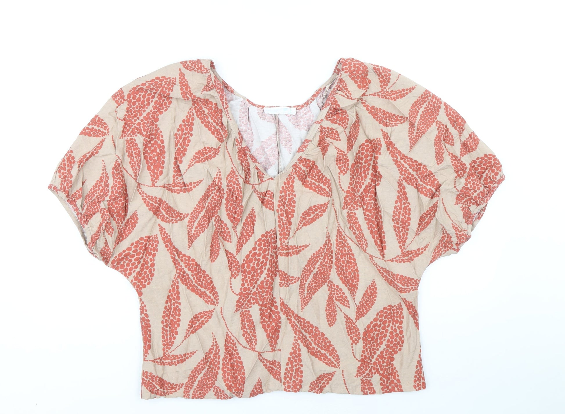 Primark Womens Brown Geometric Viscose Cropped Blouse Size 6 V-Neck - Leaf Print