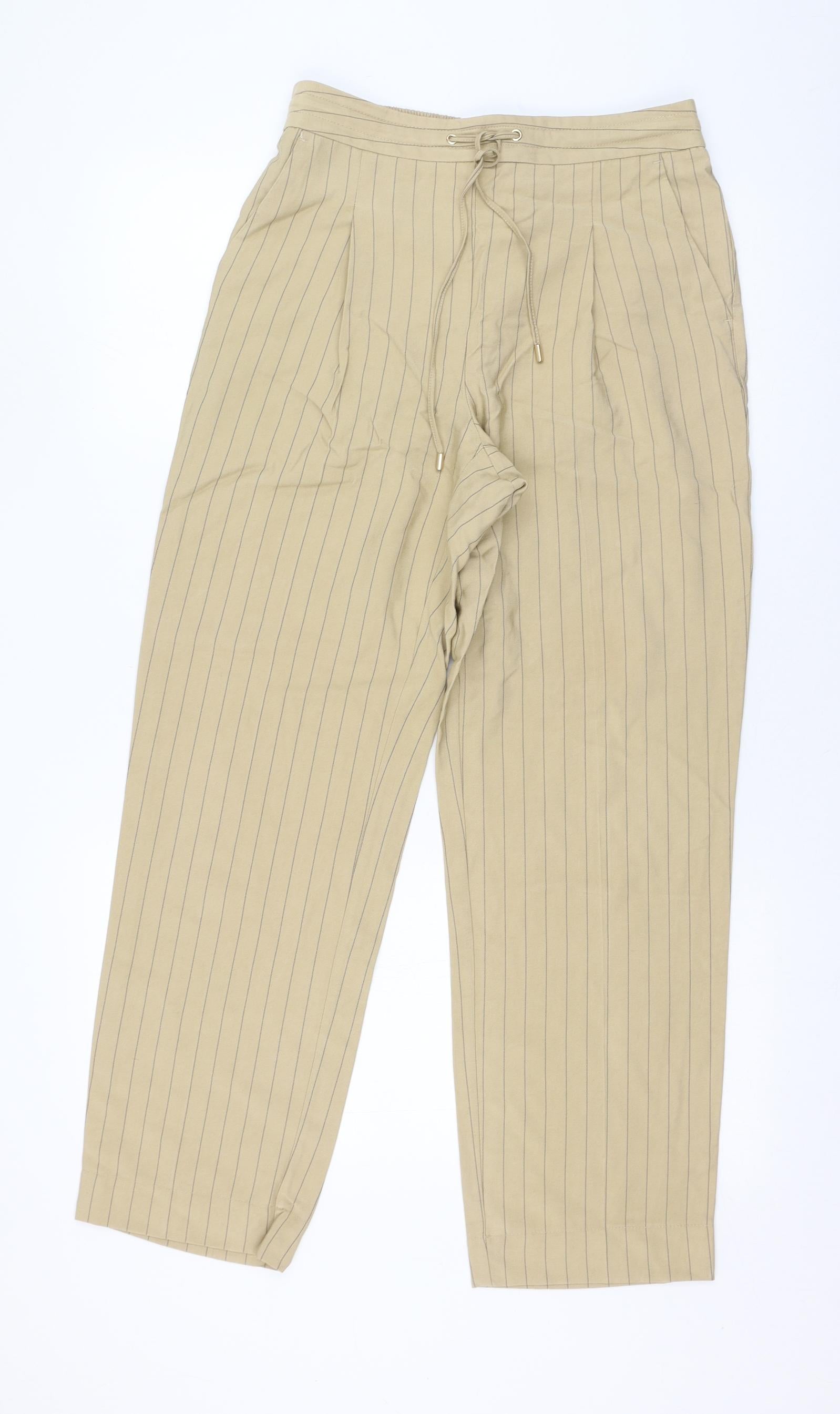 Primark Womens Brown Striped Polyester Carrot Trousers Size 10 L28 in Regular