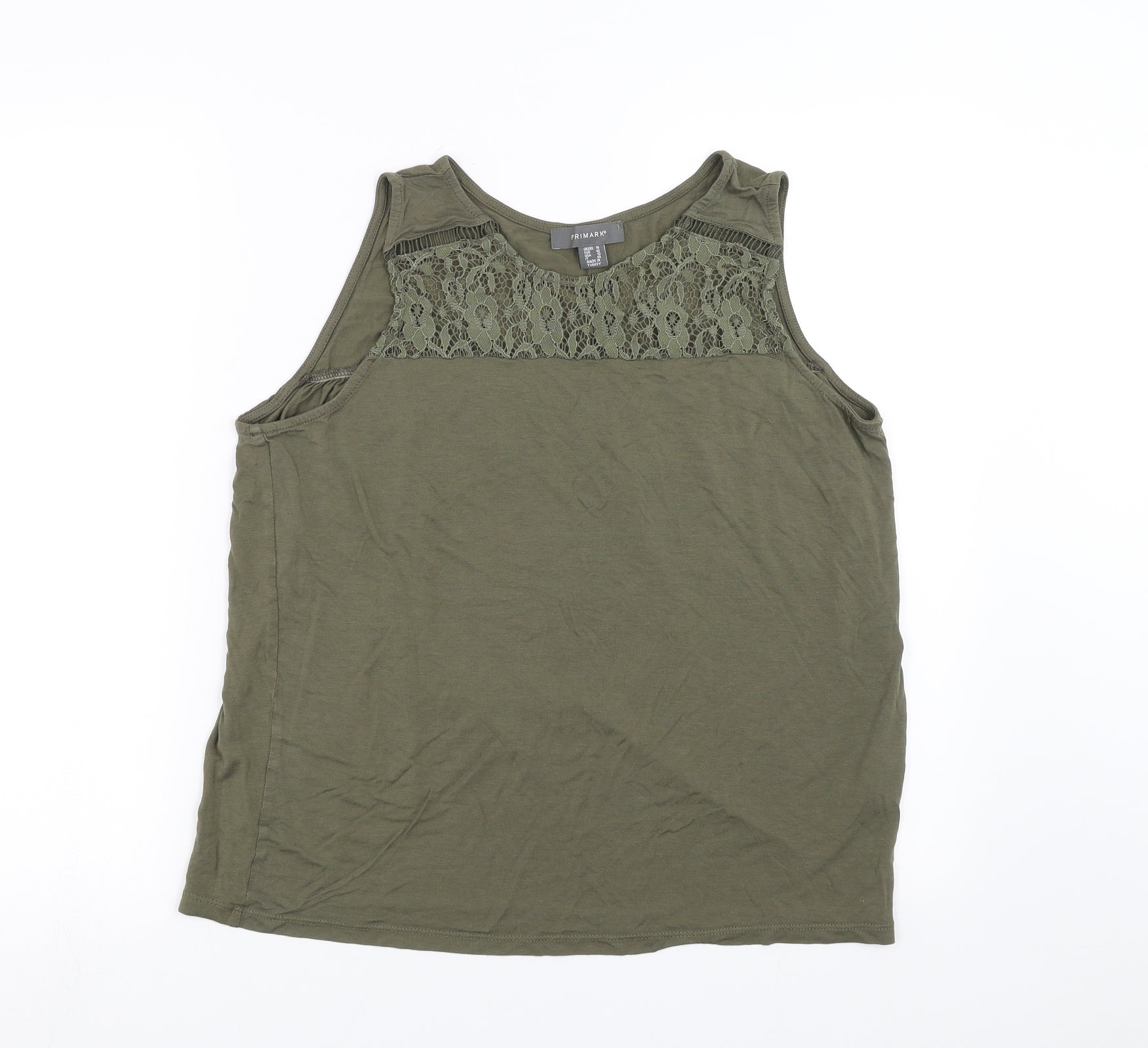 Primark Womens Green Basic Blouse Size 14 - floral lace detail