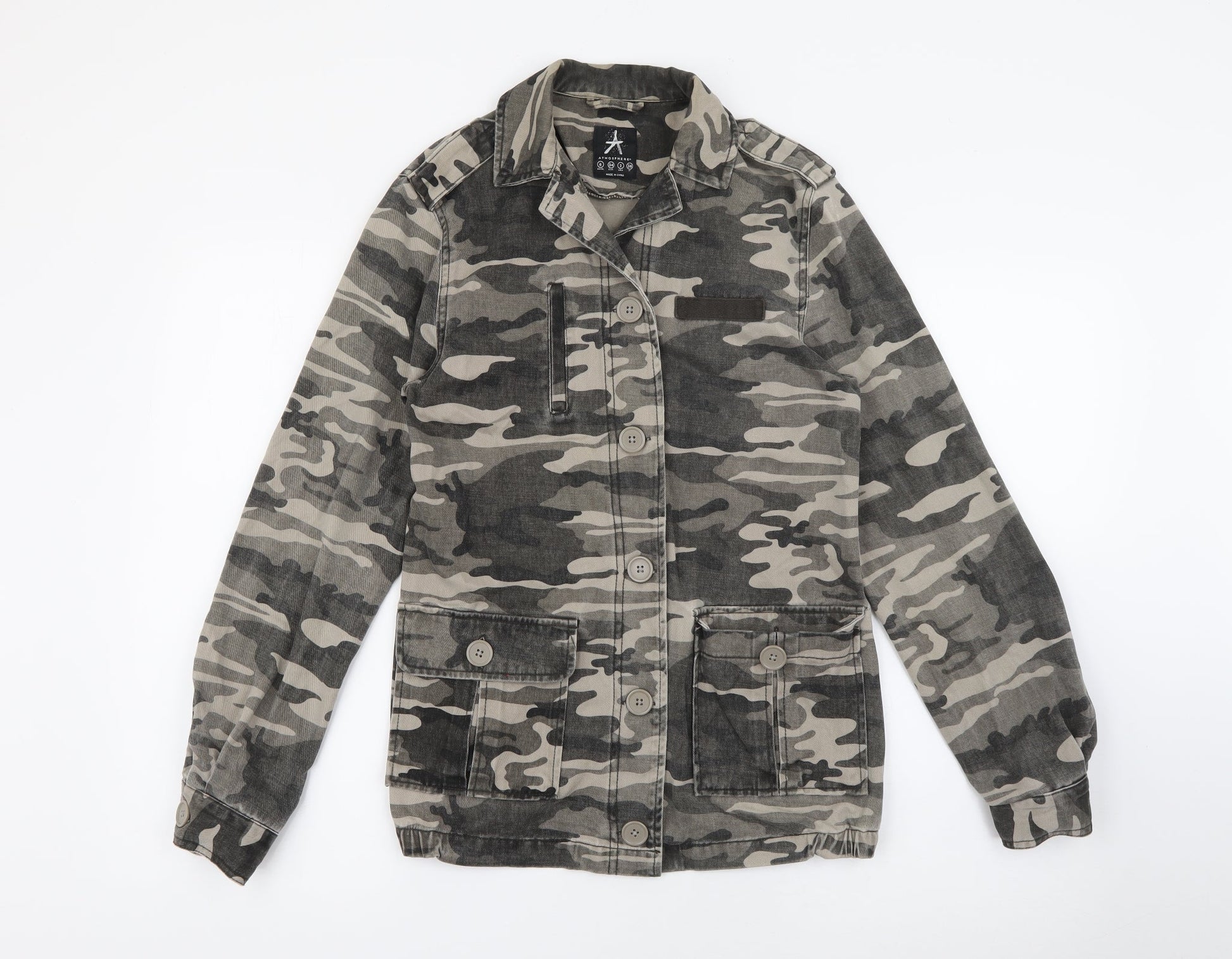Primark Womens Green Camouflage Military Jacket Jacket Size 6 Button
