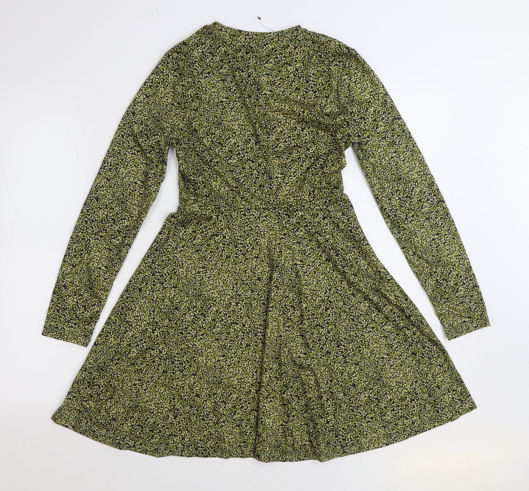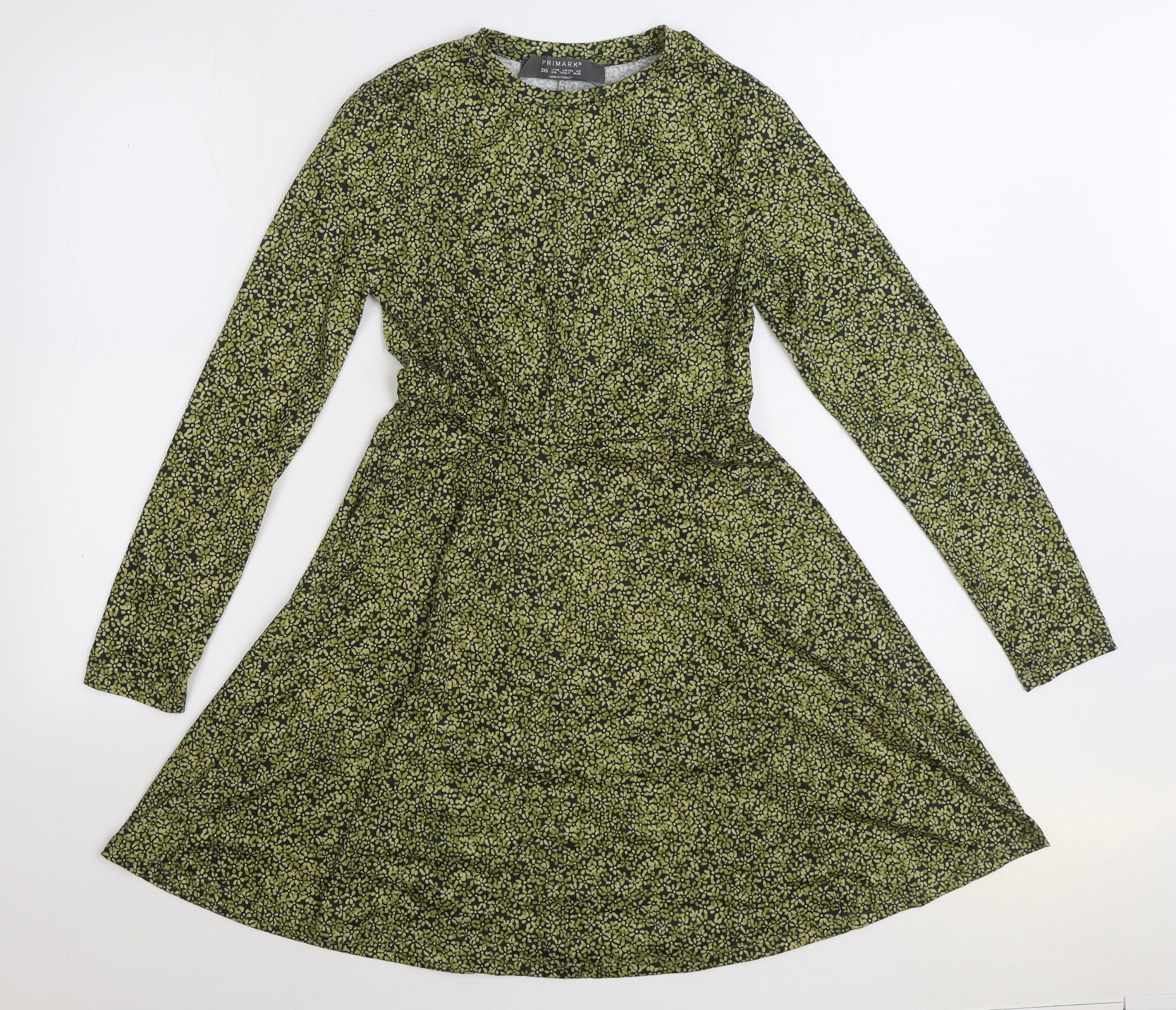 Primark Womens Green Floral Cotton Skater Dress Size 2XS Round Neck Pullover