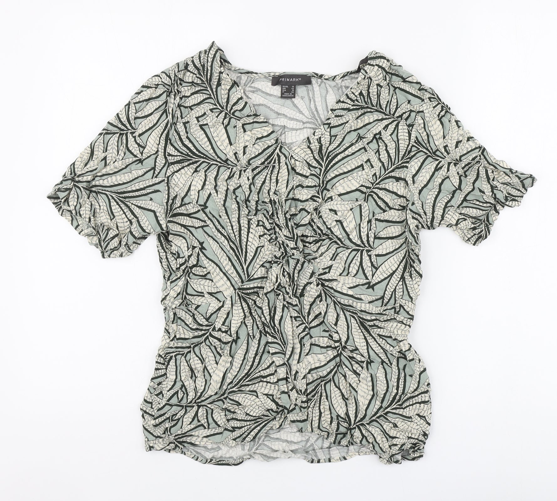 Primark Womens Green Floral Viscose Basic Blouse Size 14 Round Neck