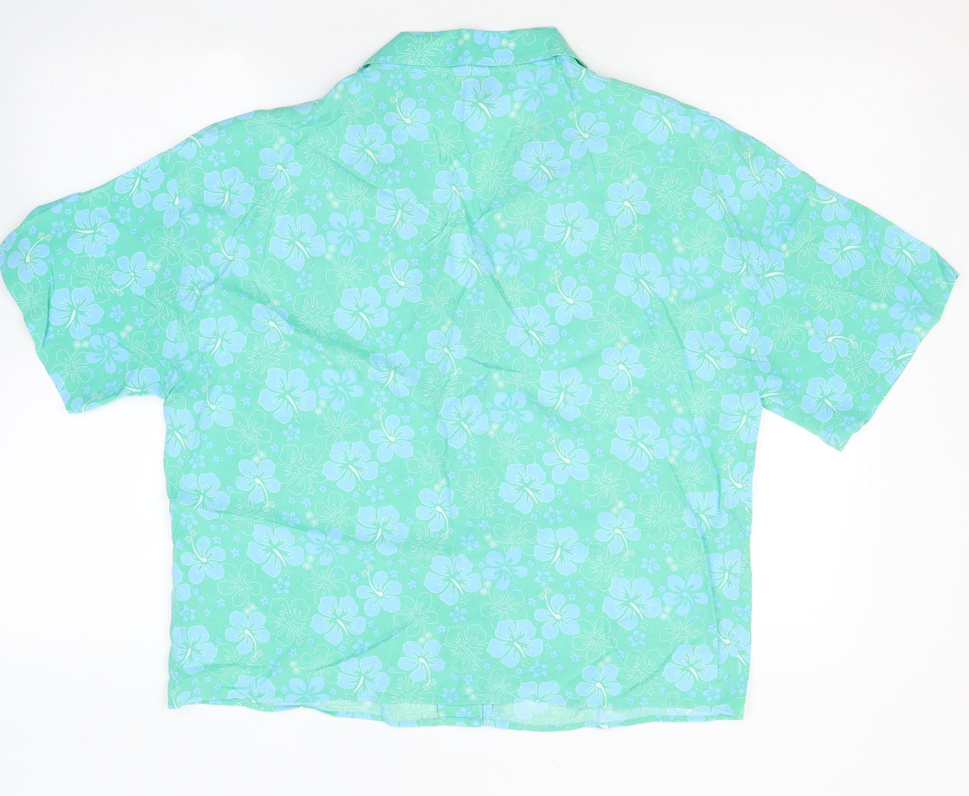 Primark Womens Green Floral Viscose Basic Button-Up Size 12 Collared