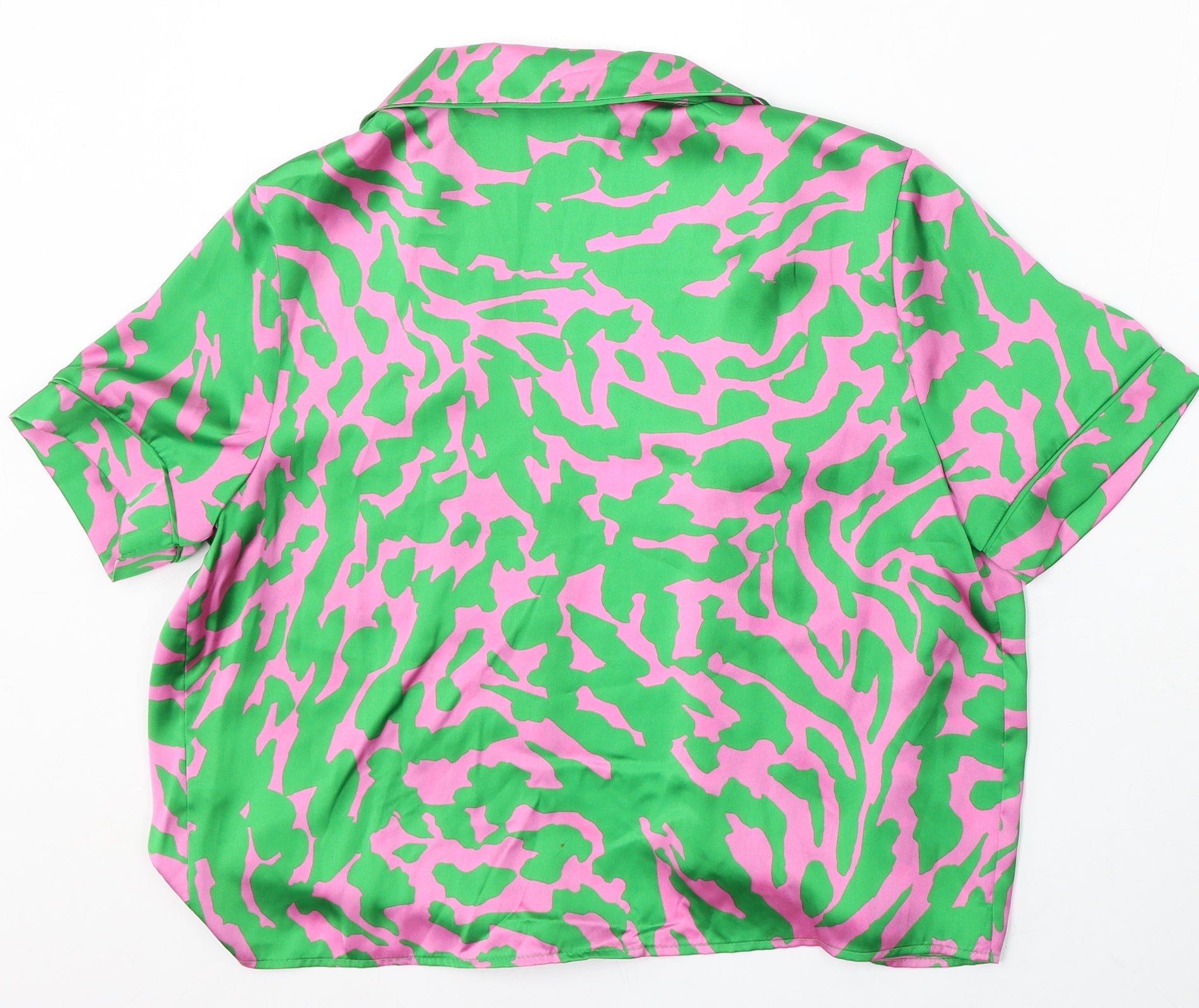 Primark Womens Green Geometric Polyester Basic Button-Up Size 6 Collared