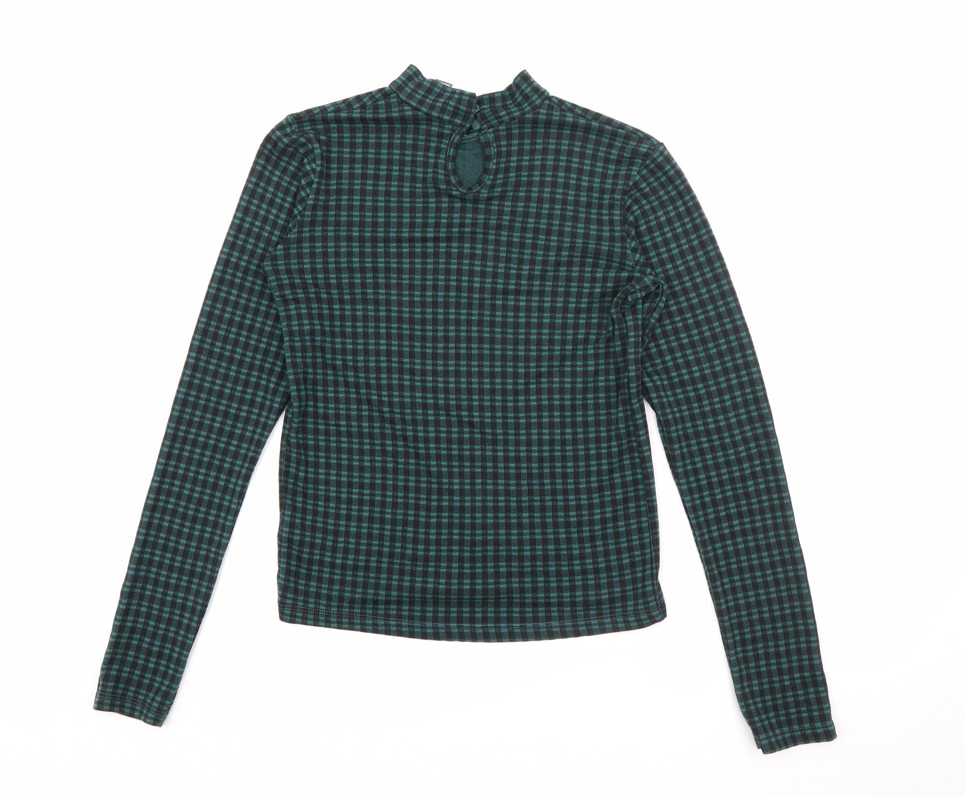 Primark Womens Green High Neck Plaid Polyester Pullover Jumper Size 4
