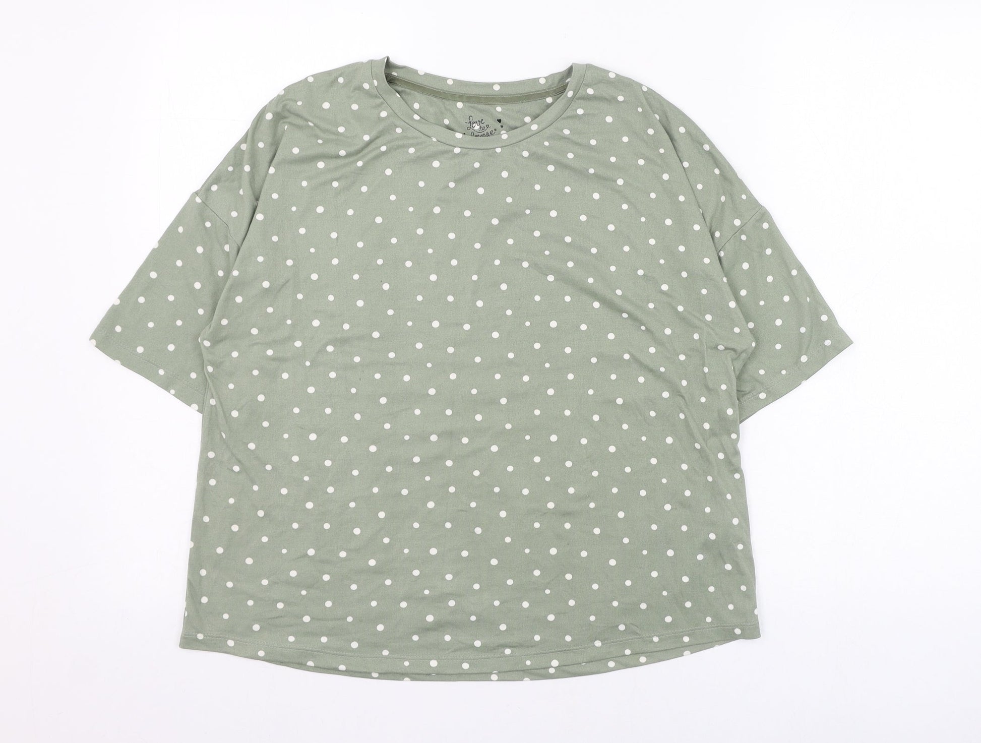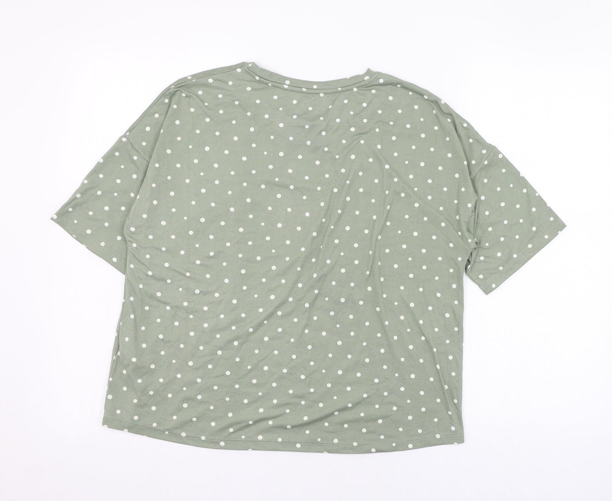 Primark Womens Green Polka Dot Polyester Basic T-Shirt Size 4 Round Neck - Loungewear