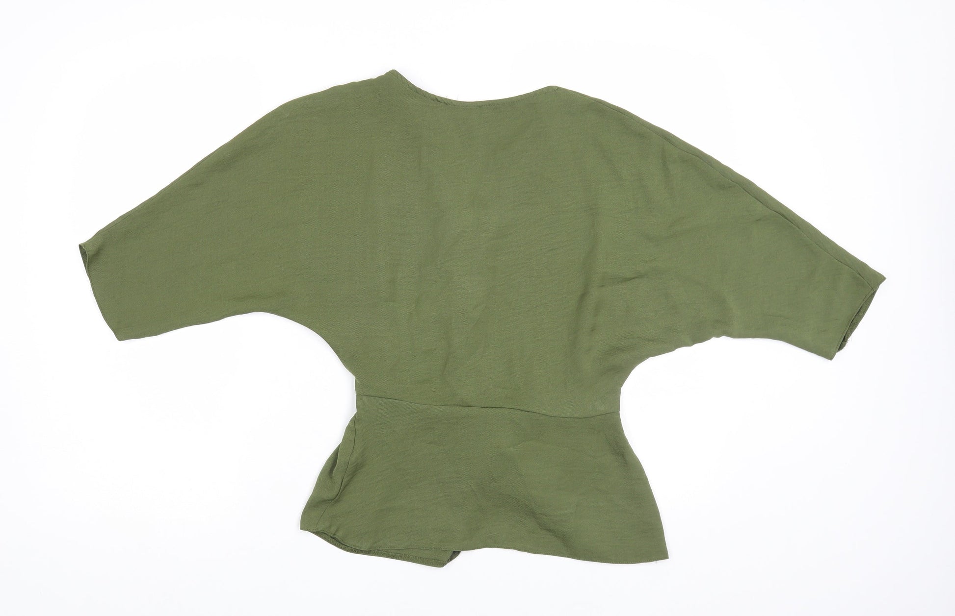 Primark Womens Green Polyester Basic Button-Up Size 8 V-Neck