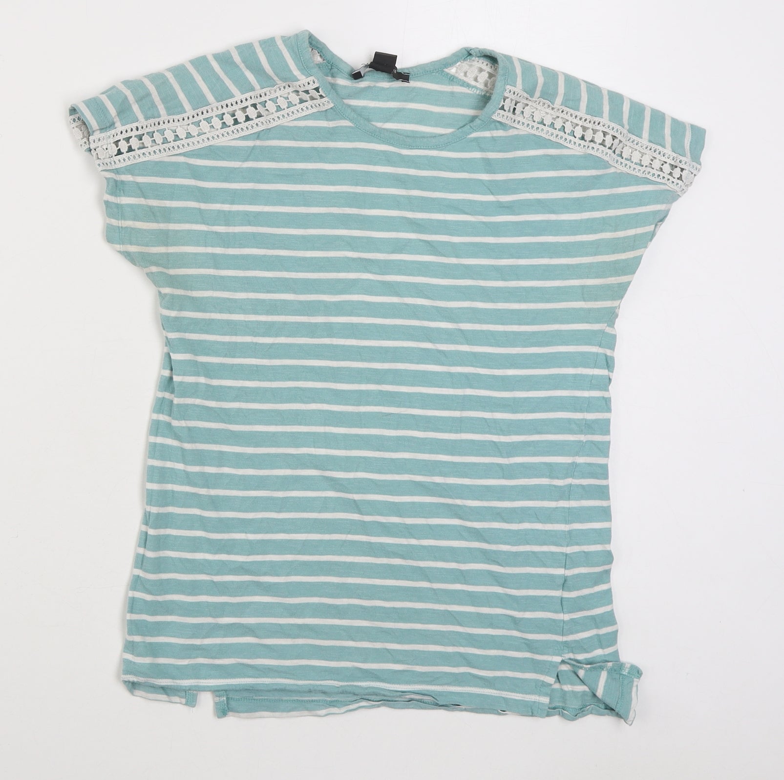 Primark Womens Green Striped 100% Cotton Basic T-Shirt Size XS Round Neck