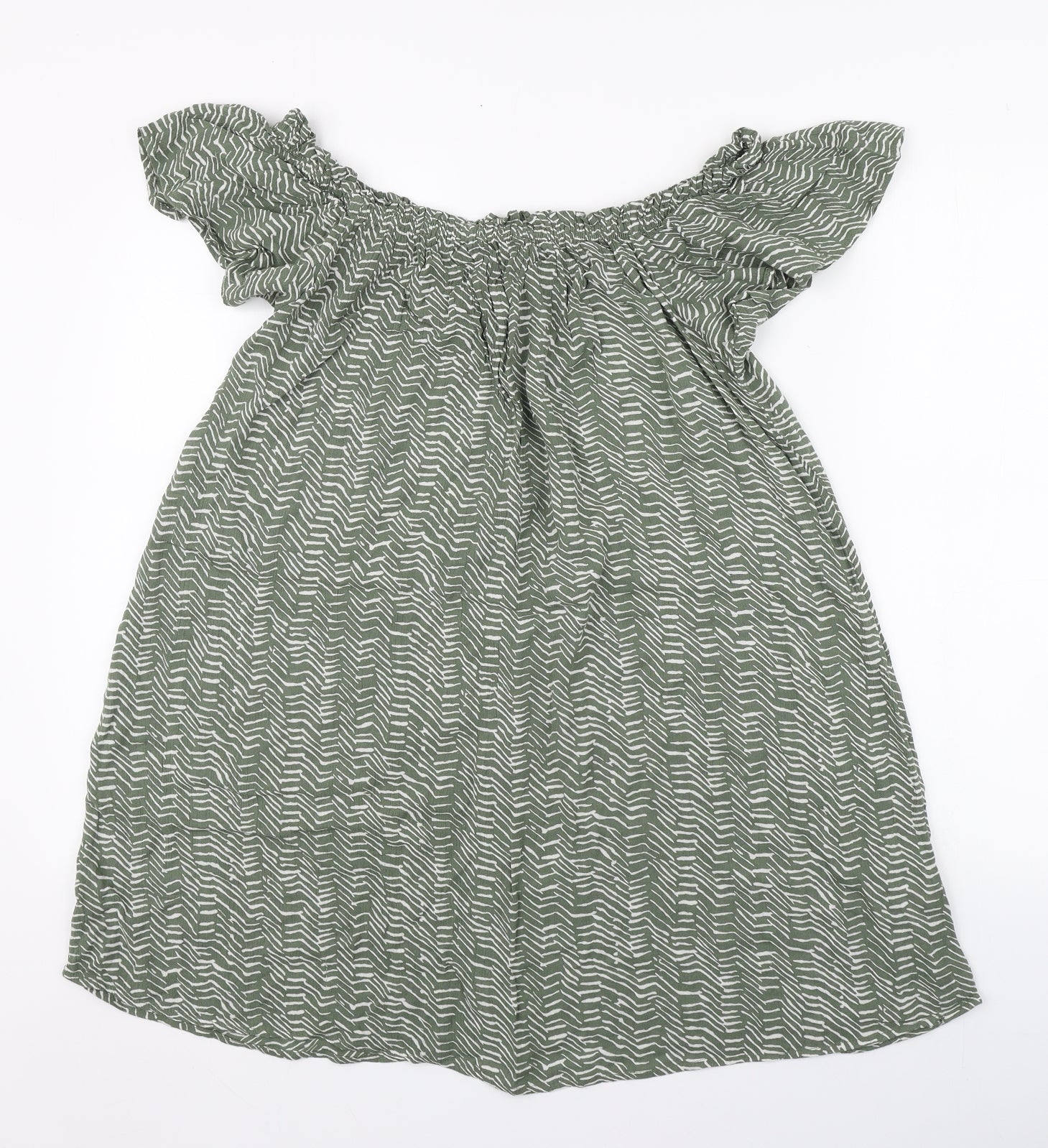 Primark Womens Green Striped Viscose Basic Blouse Size 8 Round Neck
