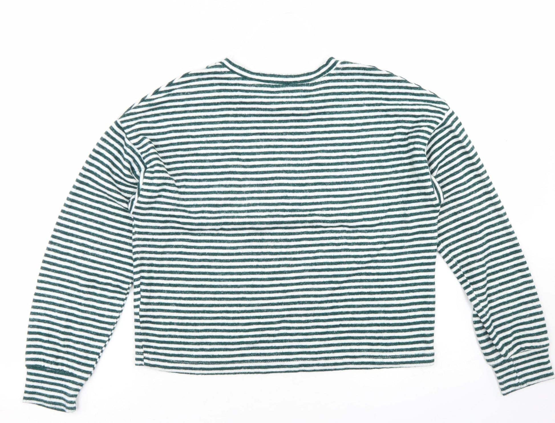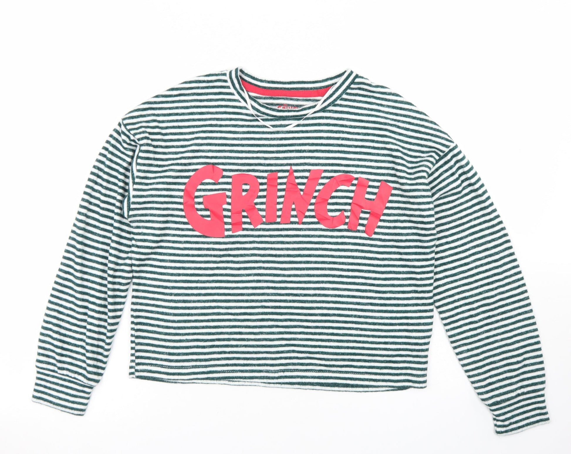 Primark Womens Green Striped Viscose Cropped T-Shirt Size XS Crew Neck - The Grinch