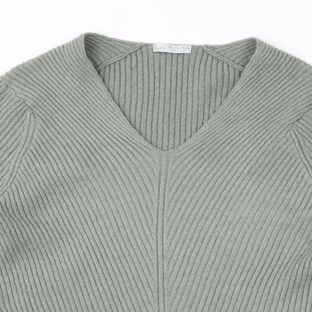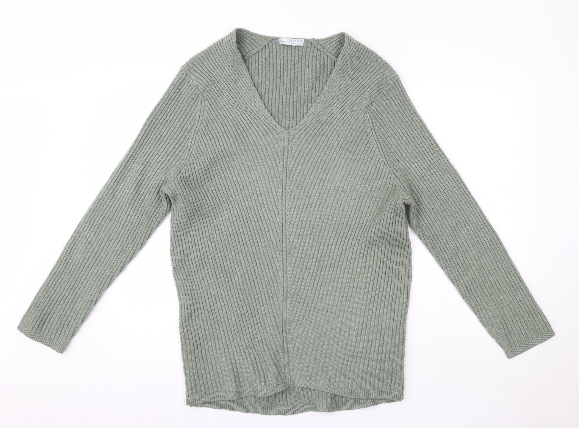 Primark Womens Green V-Neck Polyester Pullover Jumper Size L