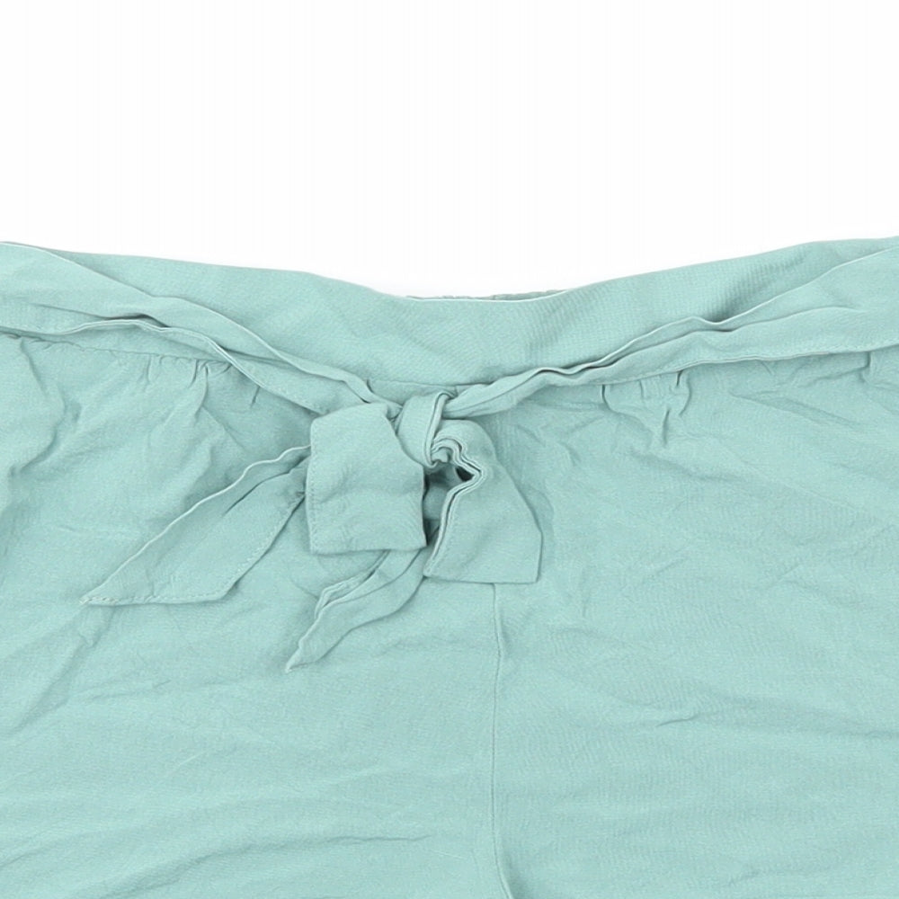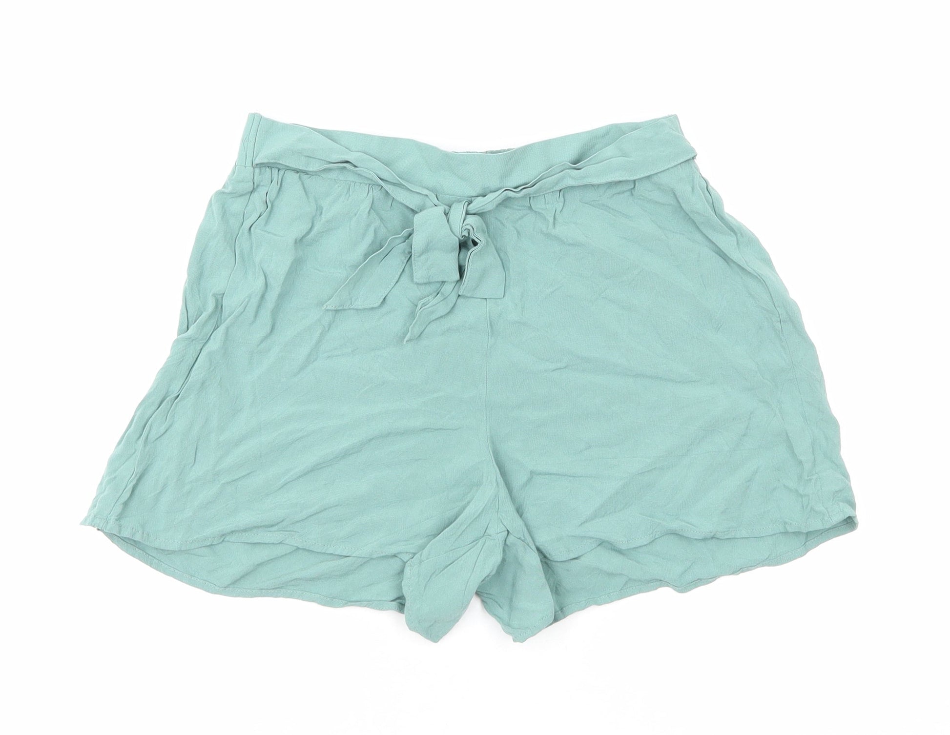 Primark Womens Green Viscose Paperbag Shorts Size 8 Regular Pull On