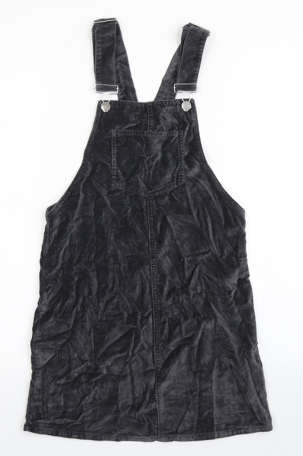 Primark Womens Grey 100% Cotton Dungaree One-Piece Size 4 Buckle