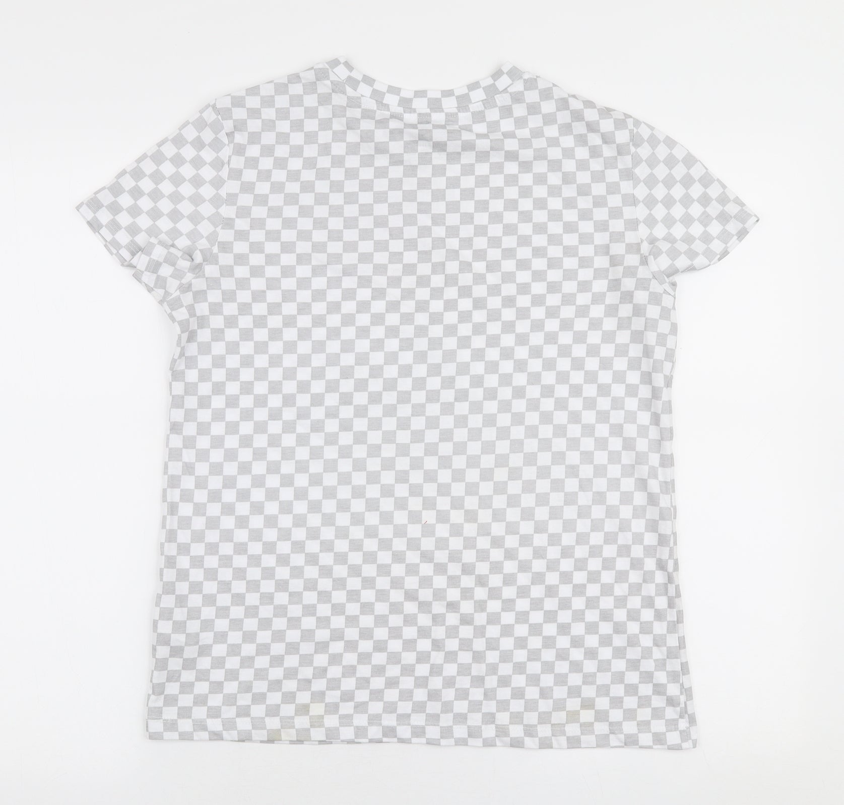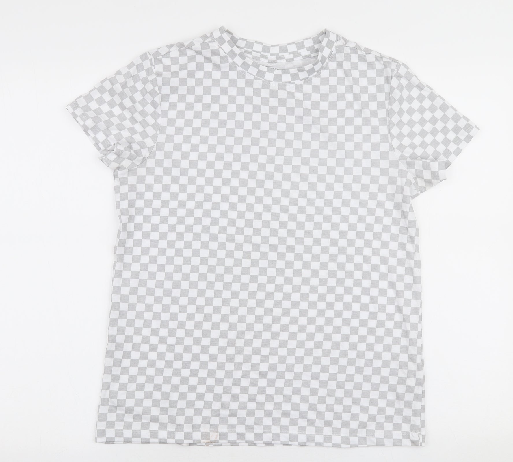 Primark Womens Grey Check 100% Cotton Jersey T-Shirt Size S Round Neck