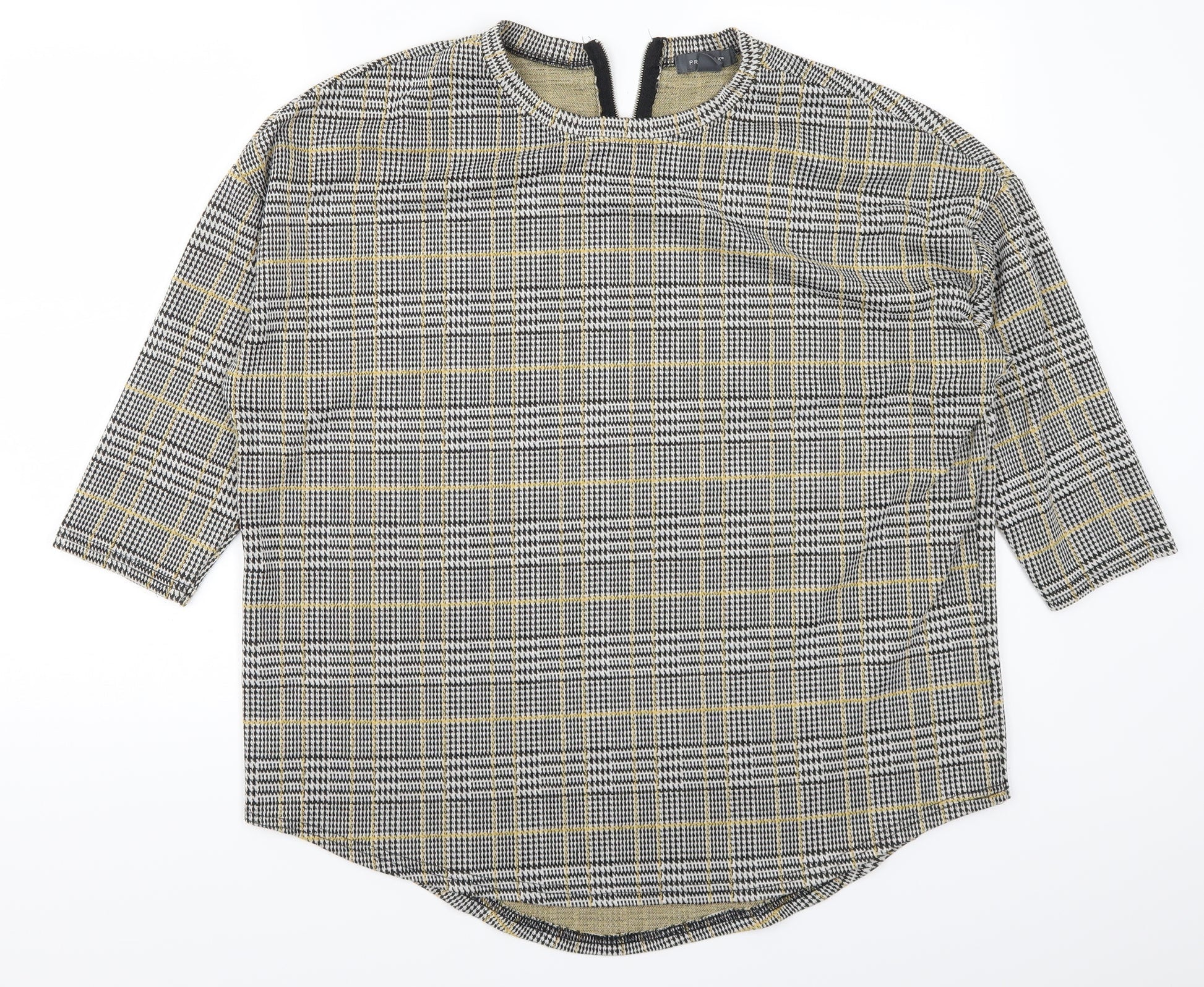 Primark Womens Grey Check Basic T-Shirt Size 14 - Yellow