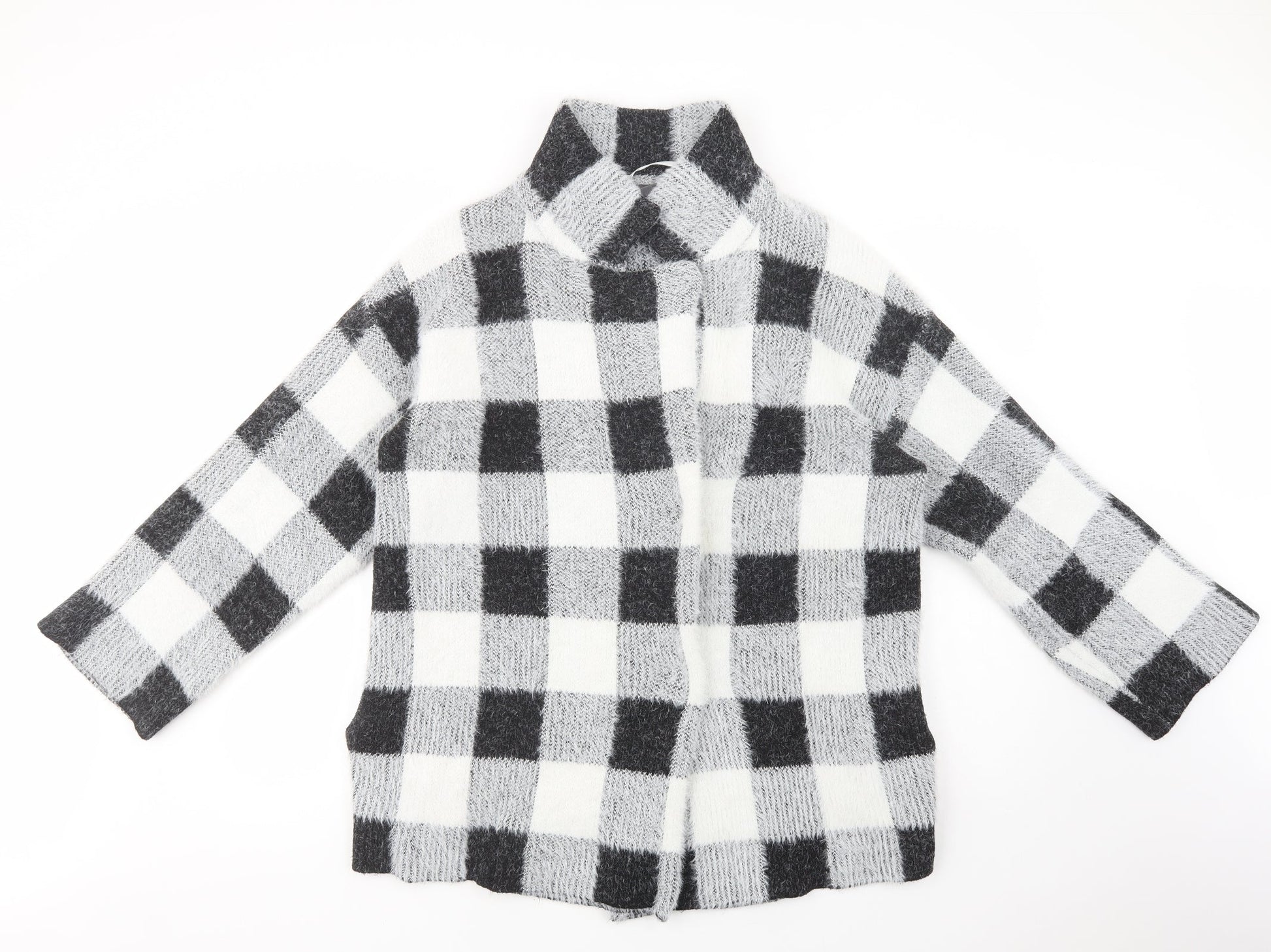 Primark Womens Grey Check Jacket Coatigan Size M Snap