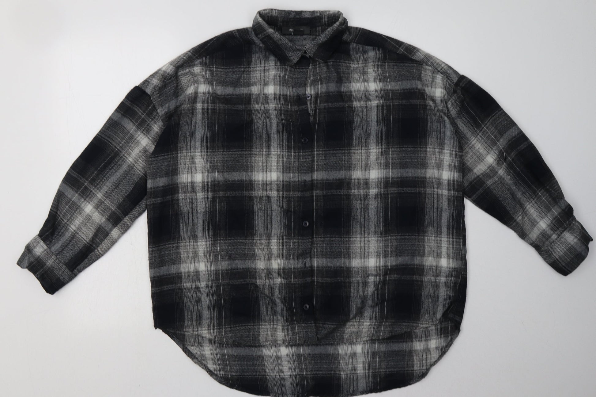 Primark Womens Grey Check Polyester Basic Button-Up Size 6 Collared