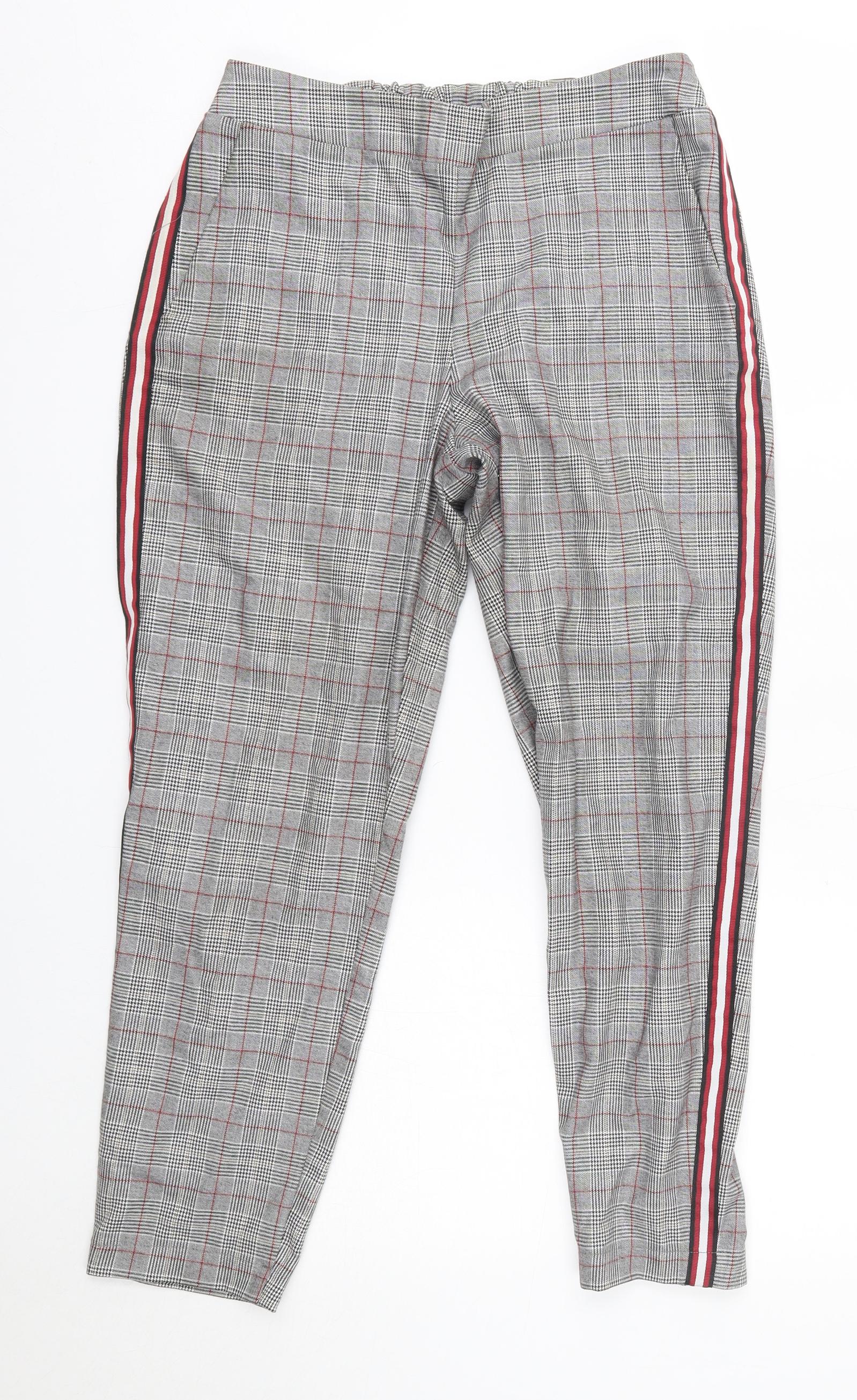 Primark Womens Grey Check Polyester Dress Pants Trousers Size 8 L25 in Regular
