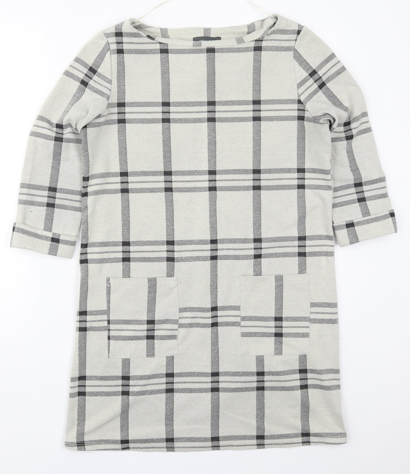 Primark Womens Grey Check Polyester T-Shirt Dress Size 10 Round Neck Pullover