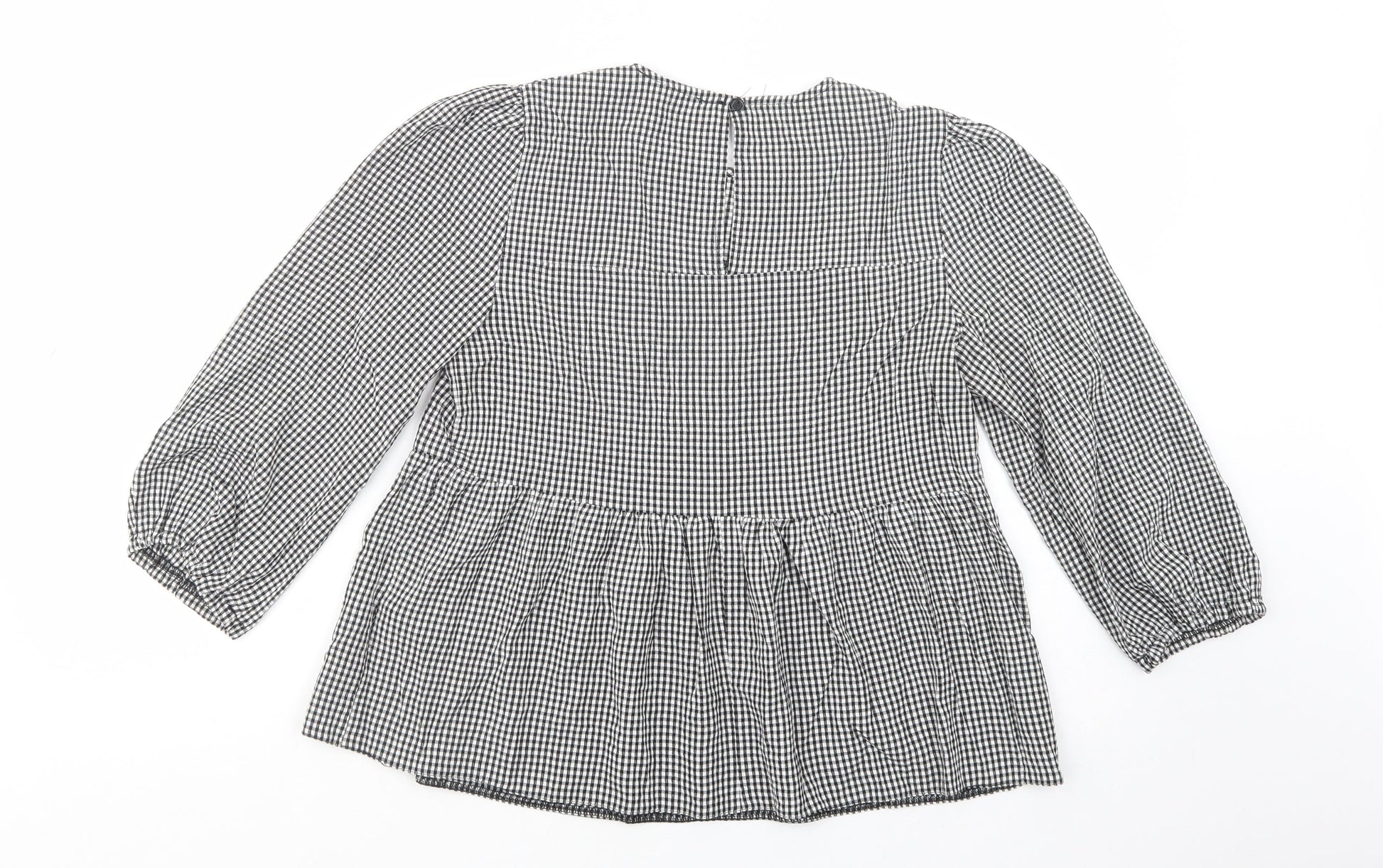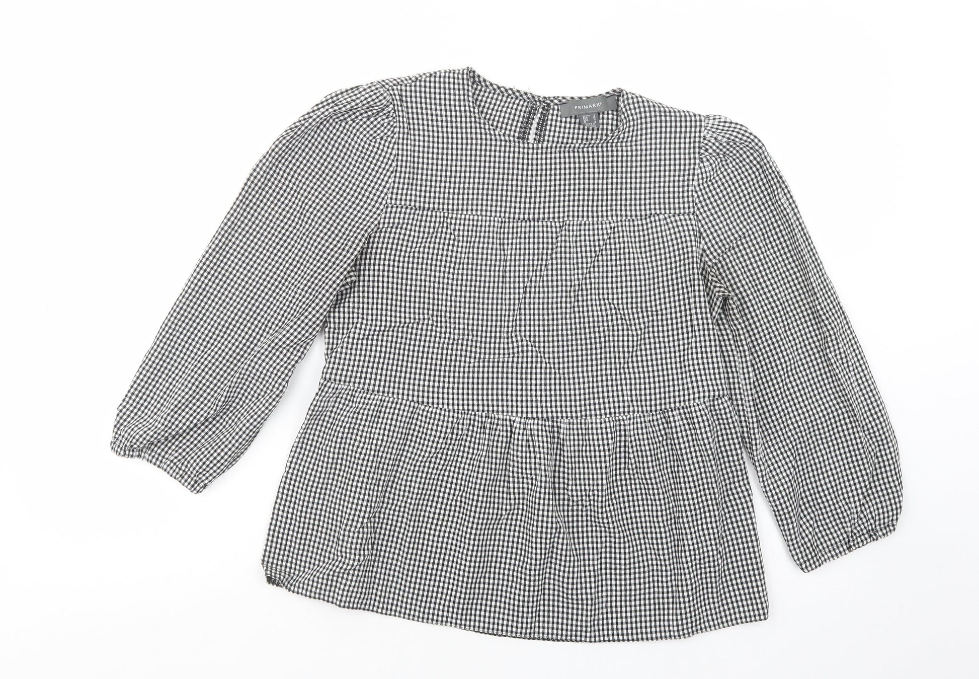 Primark Womens Grey Check Viscose Basic Blouse Size 8 Crew Neck