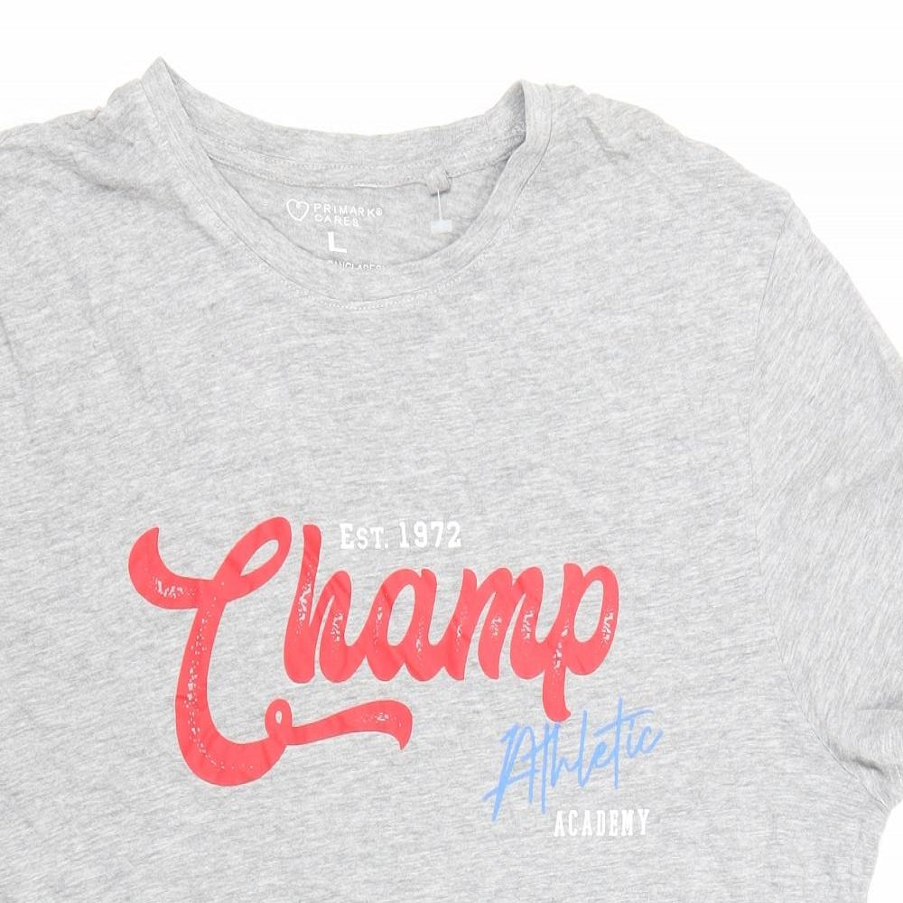 Primark Womens Grey Cotton Basic T-Shirt Size L Round Neck - Champ