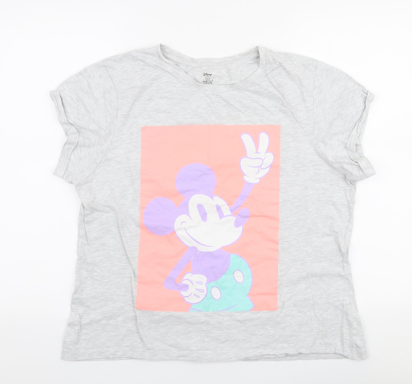 Primark Womens Grey Cotton Jersey T-Shirt Size L Round Neck - Disney Mickey Mouse