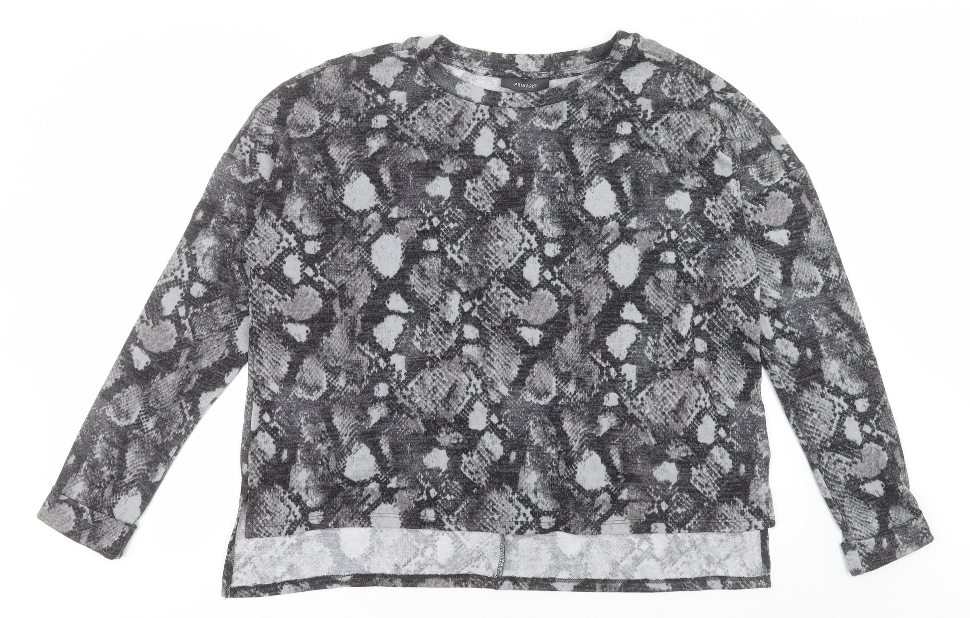 Primark Womens Grey Crew Neck Animal Print Polyester Pullover Jumper Size M