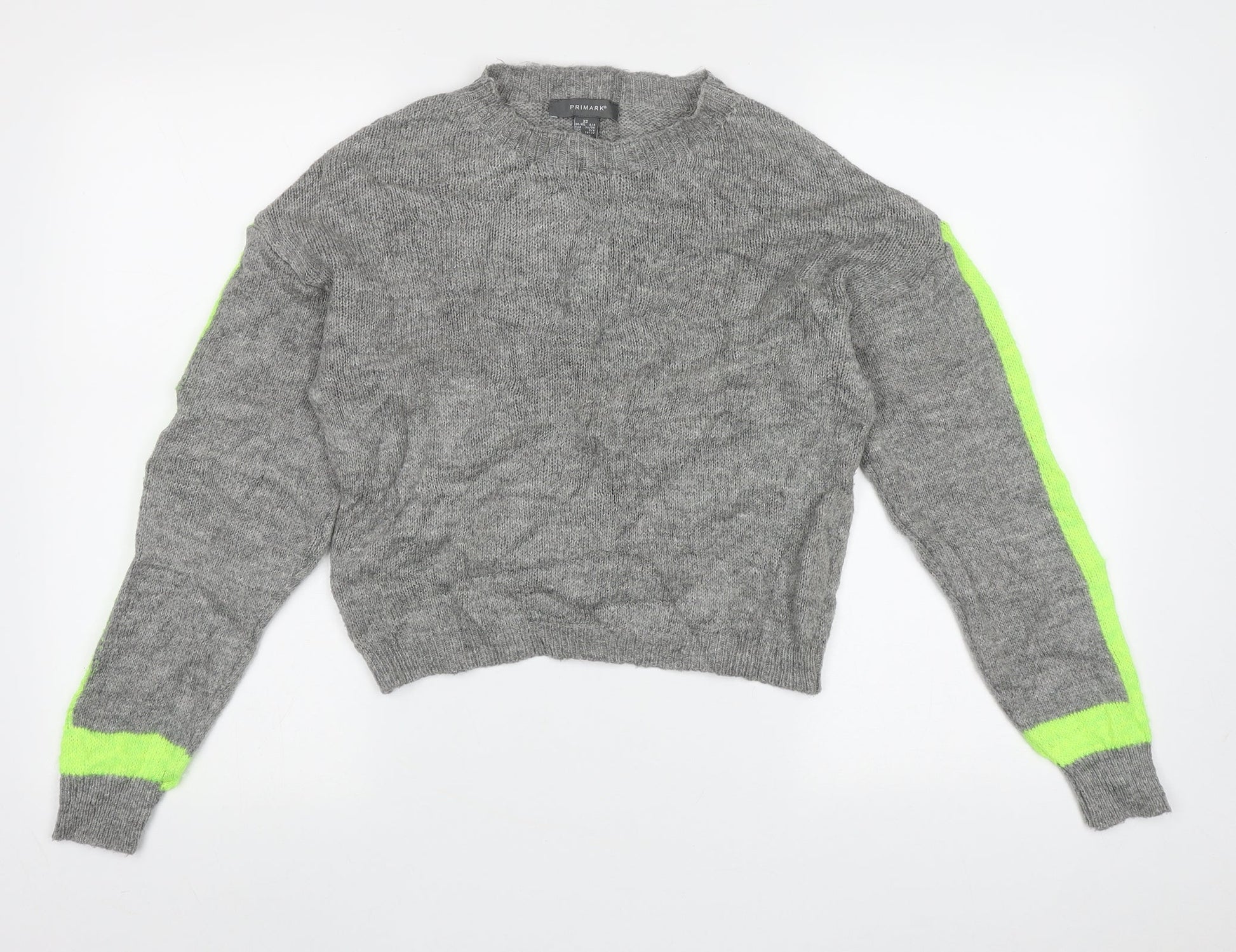 Primark Womens Grey Crew Neck Striped Acrylic Pullover Jumper Size 8