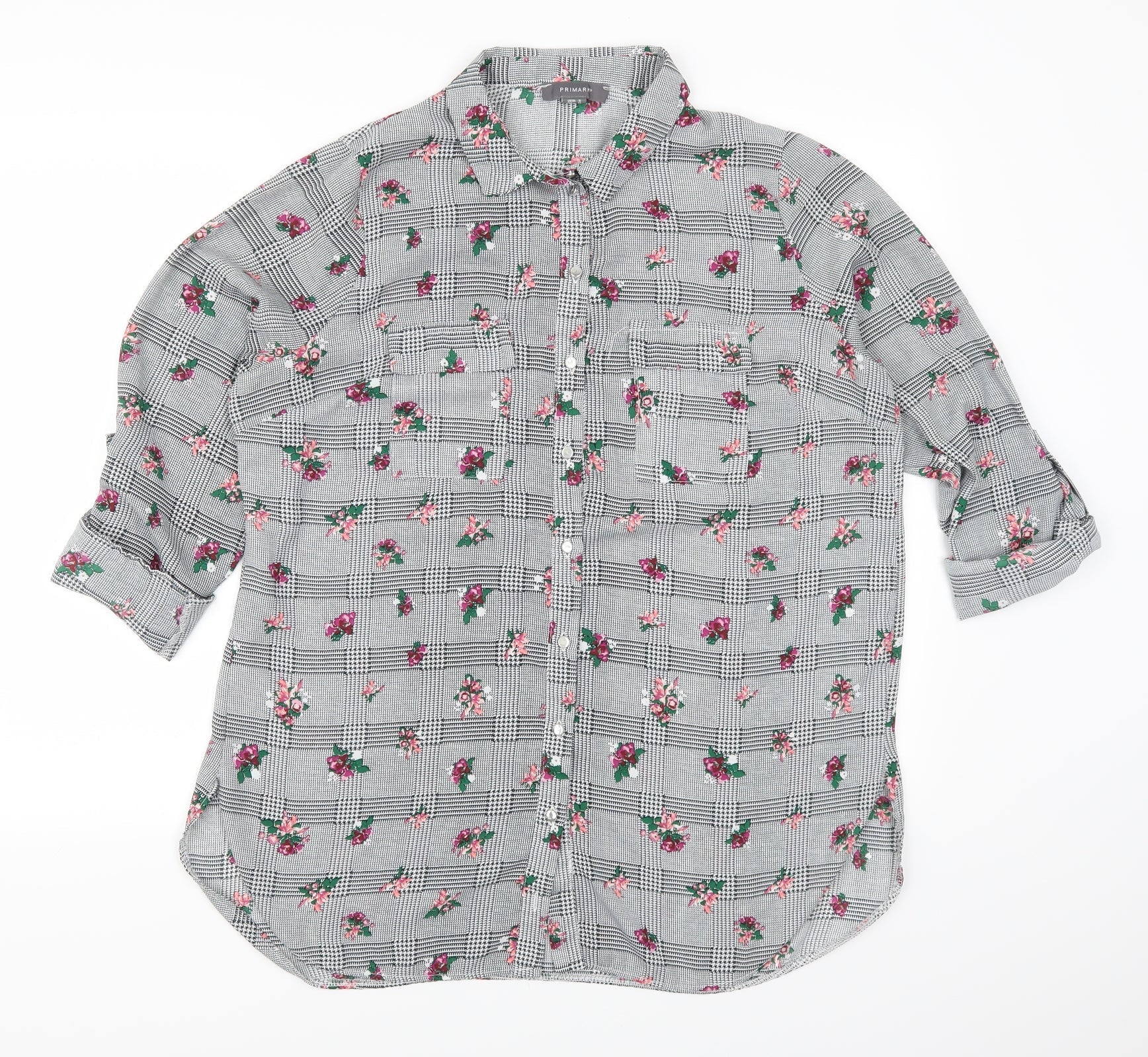 Primark Womens Grey Floral Basic Button-Up Size 16