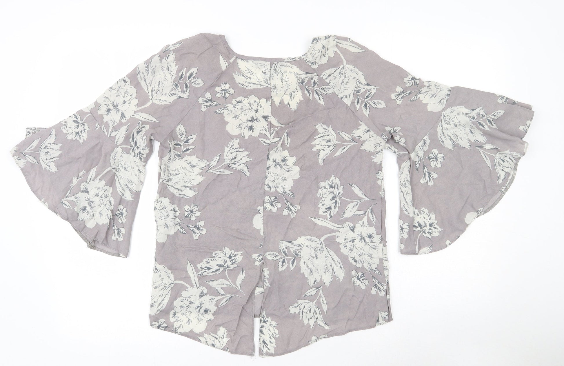Primark Womens Grey Floral Polyester Basic Blouse Size 8 Round Neck