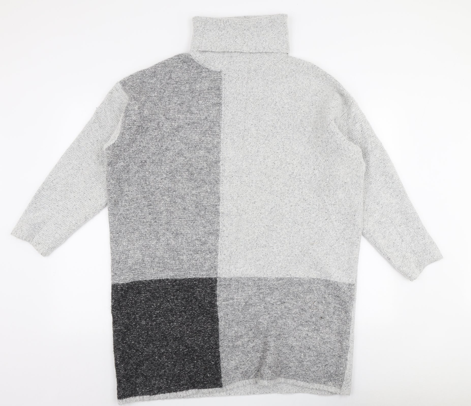 Primark Womens Grey High Neck Striped Polyester Pullover Jumper Size M