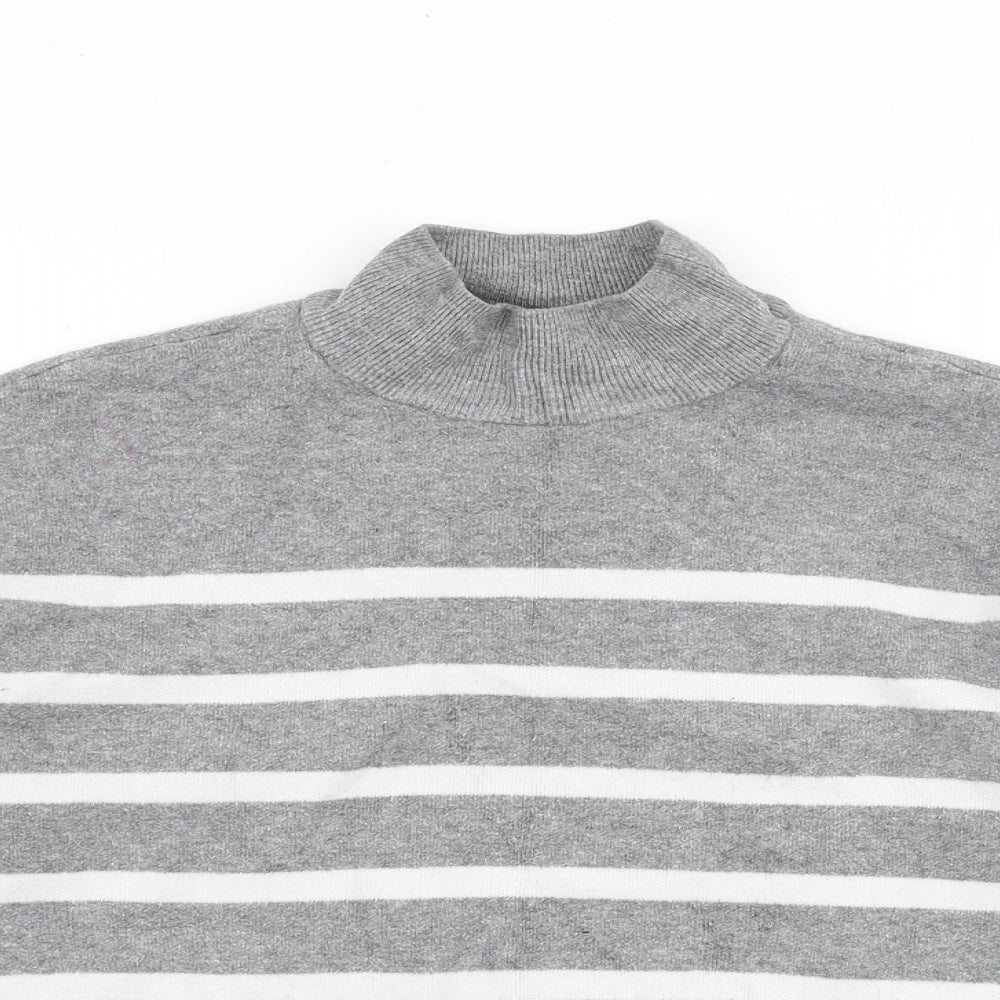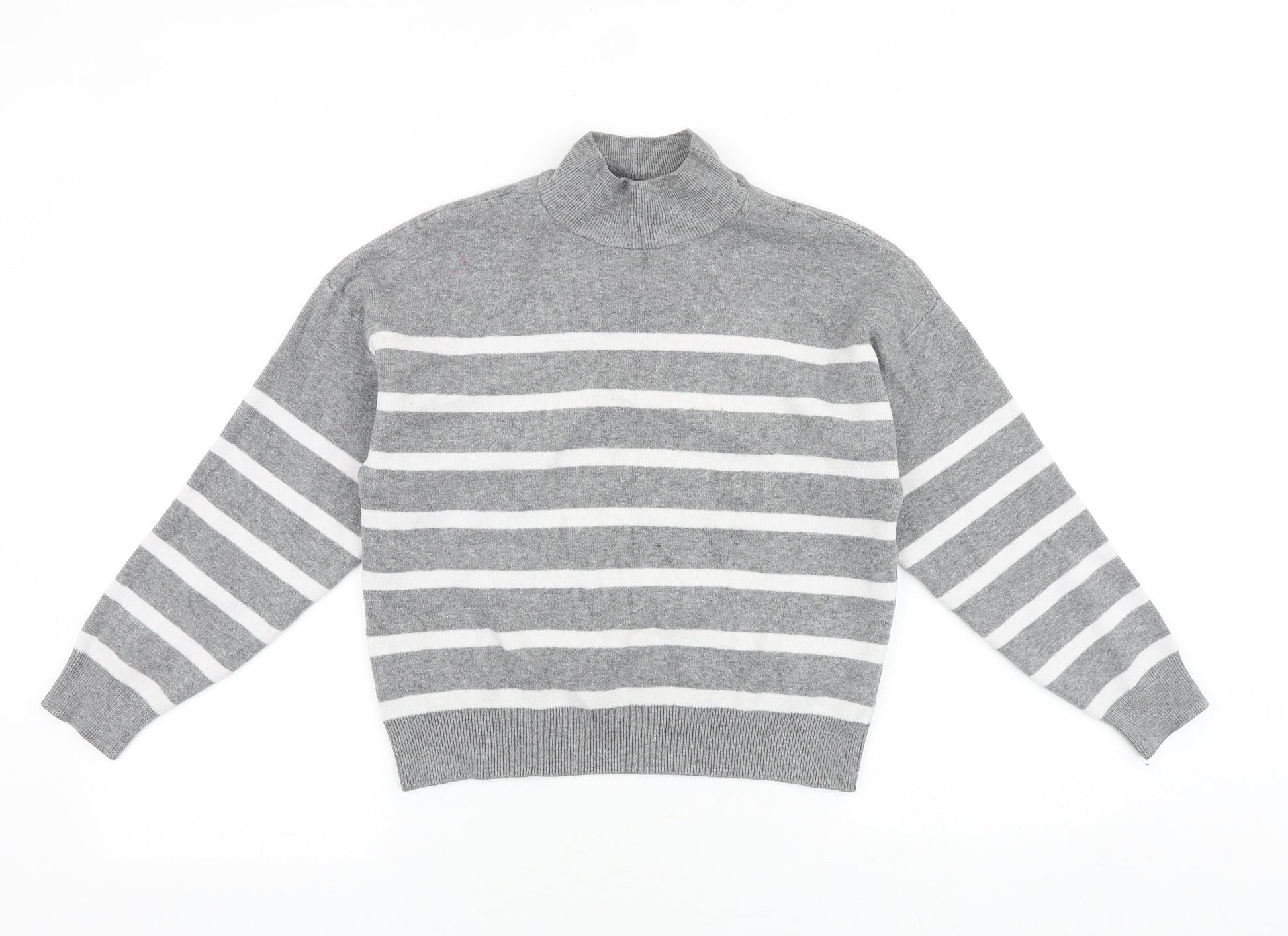 Primark Womens Grey High Neck Striped Viscose Pullover Jumper Size S