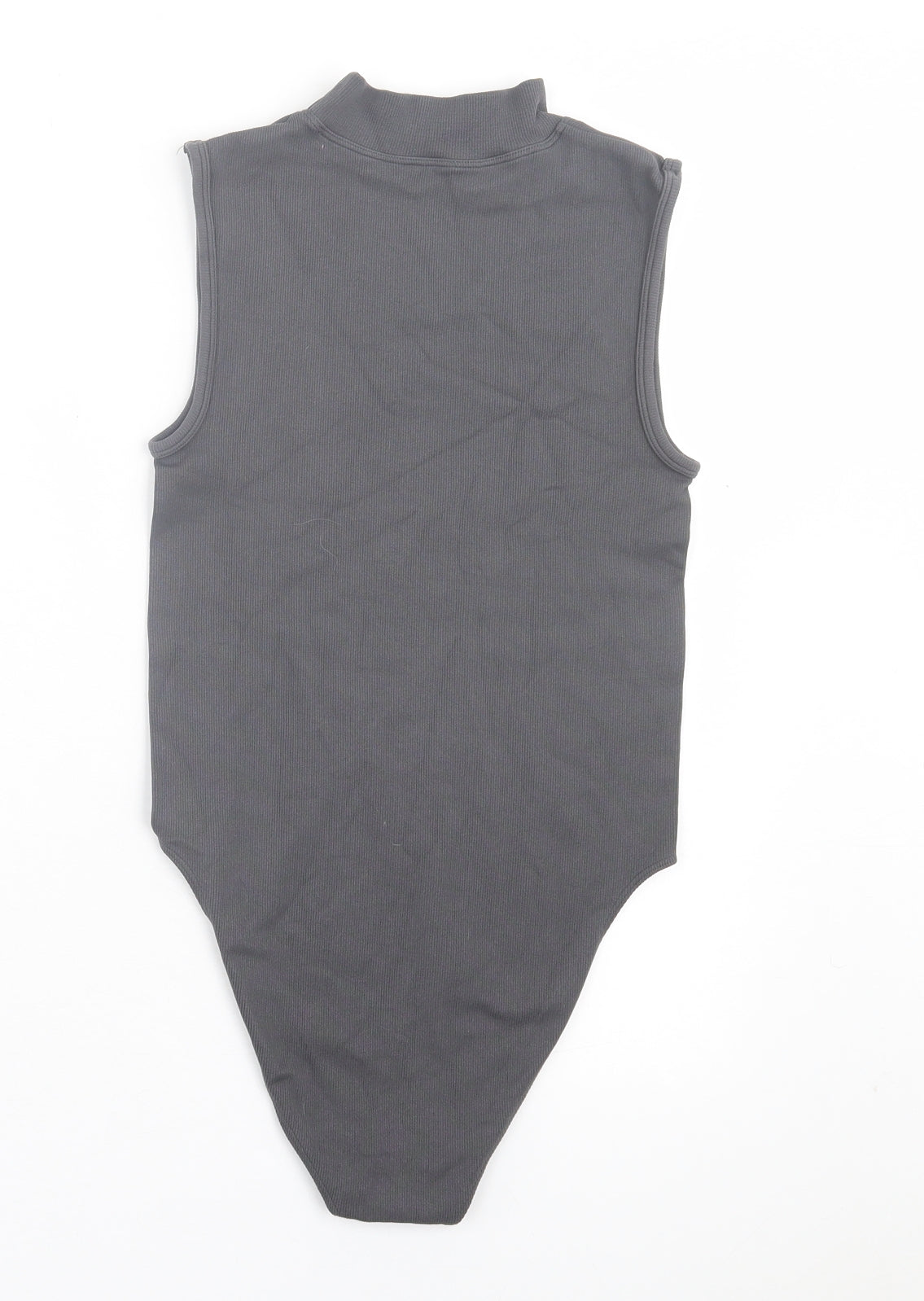 Primark Womens Grey Nylon Bodysuit One-Piece Size S Snap - Ribbed Fabric